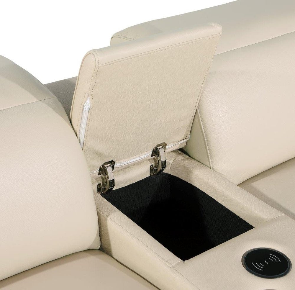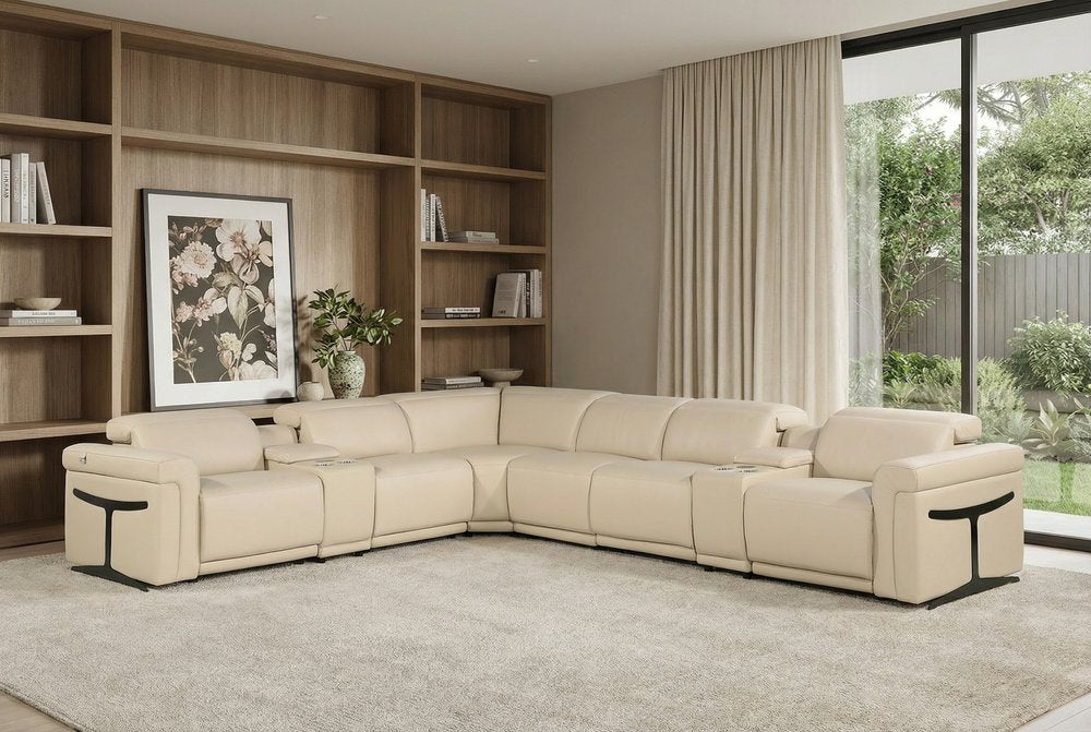 Beige Italian Leather Modular L Shaped Eight Piece Corner Sectional With Console