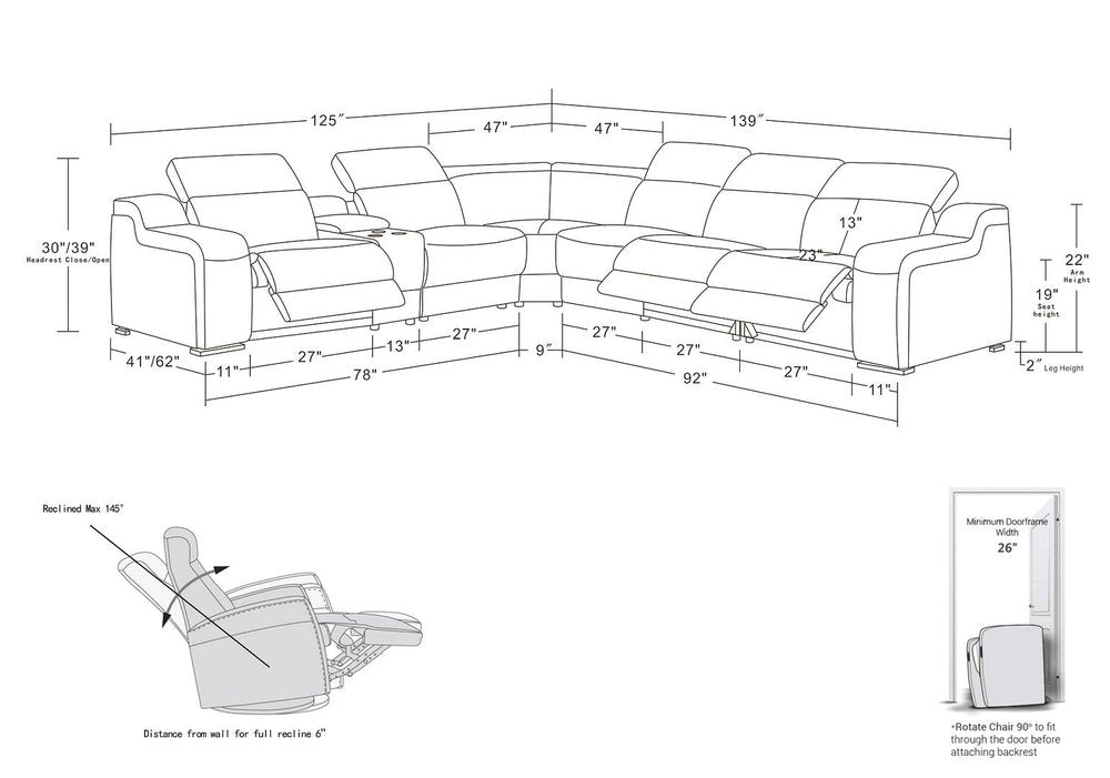An interior designer's dream, this buttery soft high-grade leather beige italian leather power reclining curved seven piece corner sectional with... Read more