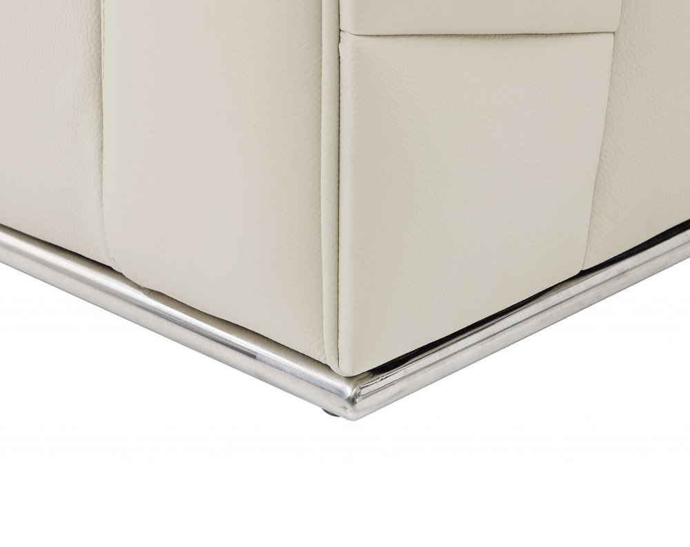 Beige Italian Leather Reclining L Shaped Two Piece Corner Sectional