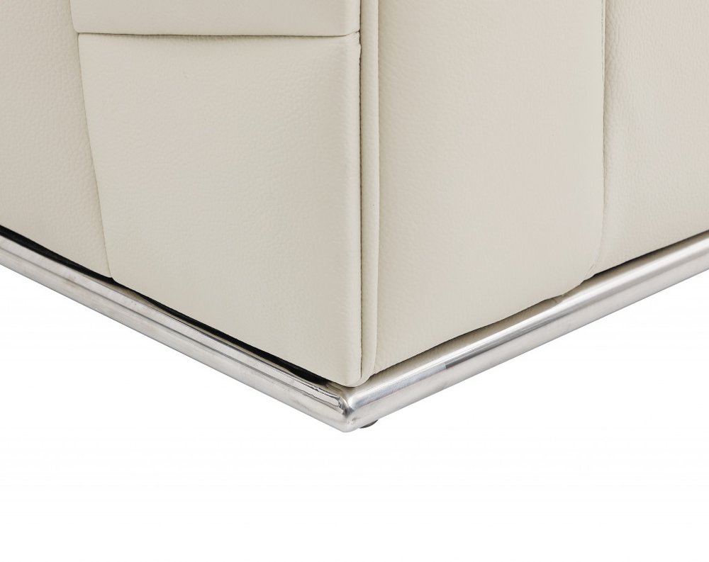 Beige Italian Leather Reclining L Shaped Two Piece Corner Sectional