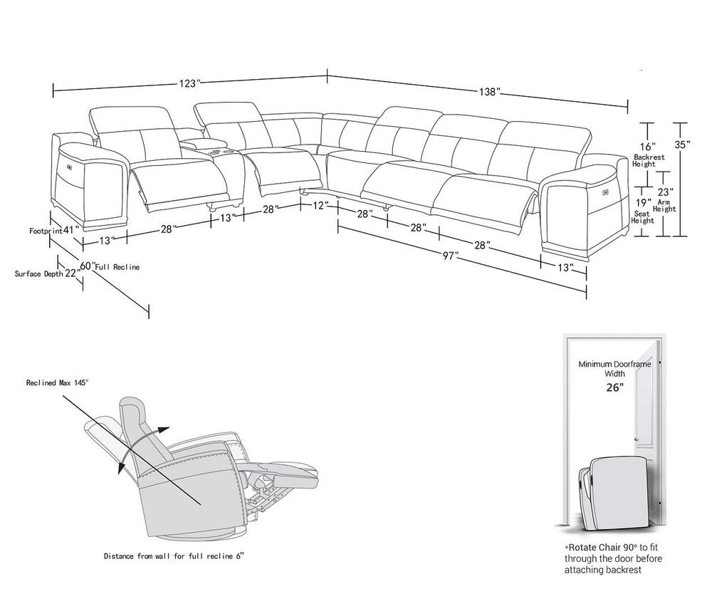 The beige leather power reclining l shaped seven piece corner sectional with console is spacious design meticulously crafted with extraordinary...