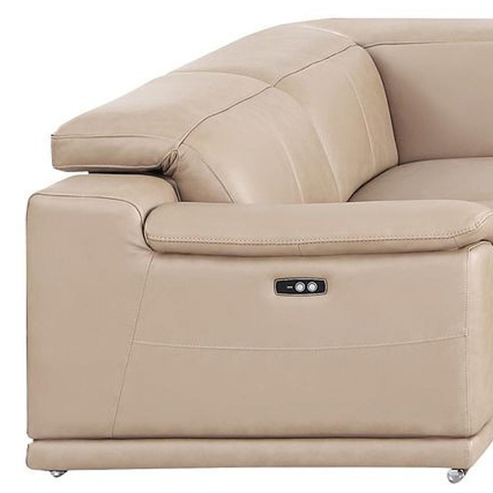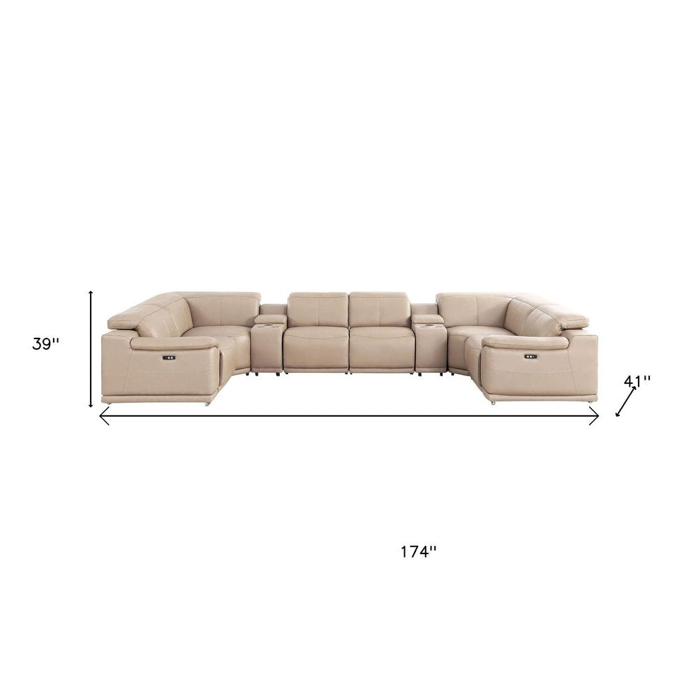Beige Leather Modular U Shaped Eight Piece Corner Sectional With Console