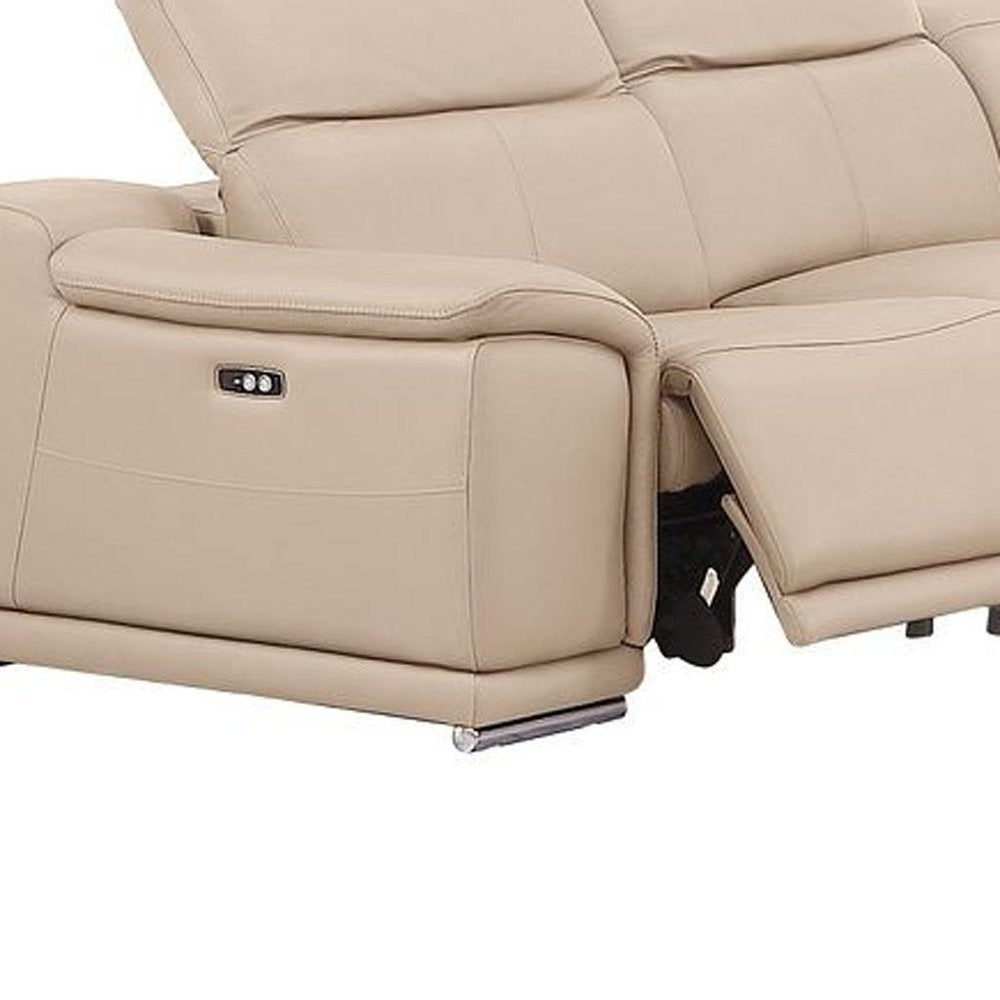 Beige Leather Modular U Shaped Ten Piece Corner Sectional With Console