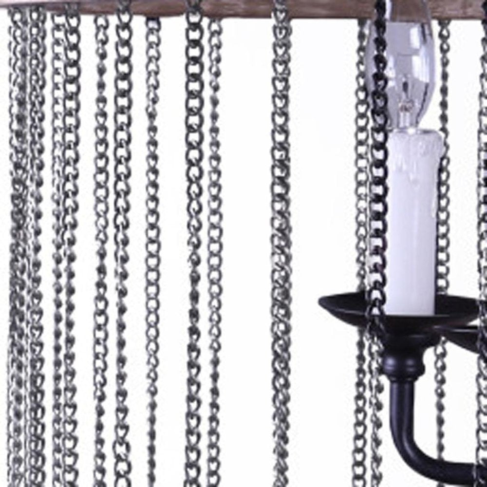Black And Natural Wood and Metal Cylinder Six Light Dimmable Chandelier