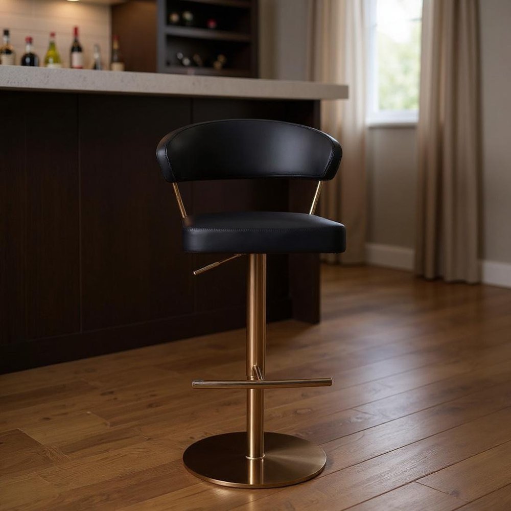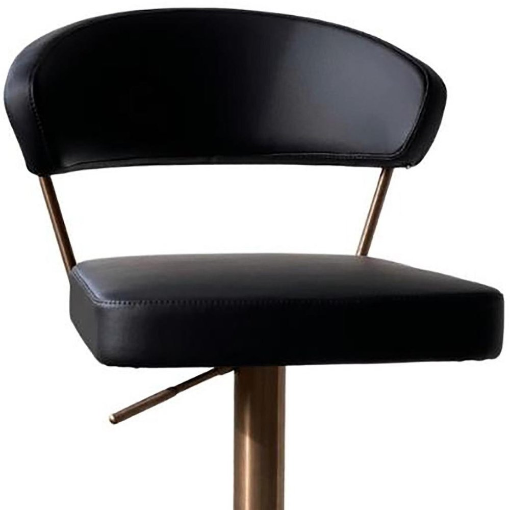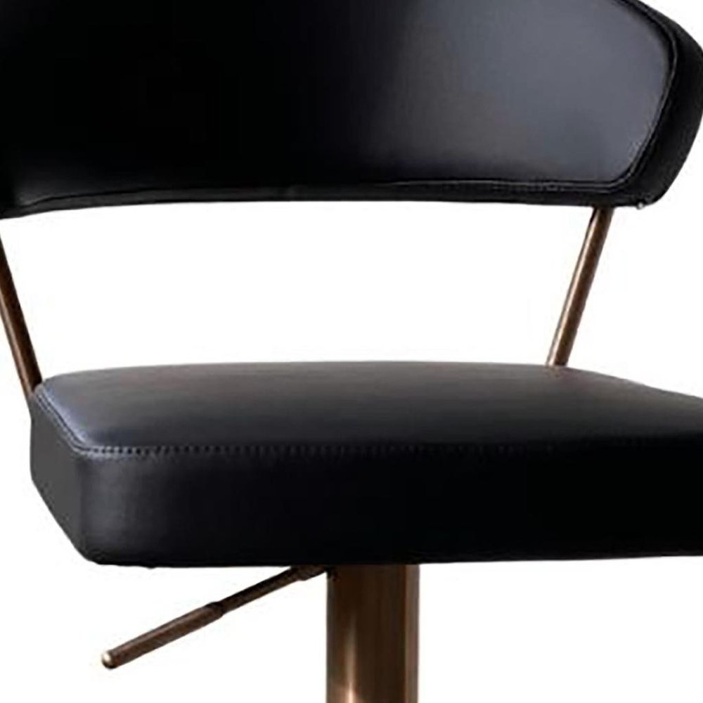 Black and Rose Gold Faux Leather and Steel Low Back Adjustable Height Swivel Bar Chair