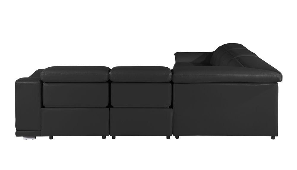 Black Italian Leather Modular L Shaped Five Piece Corner Sectional
