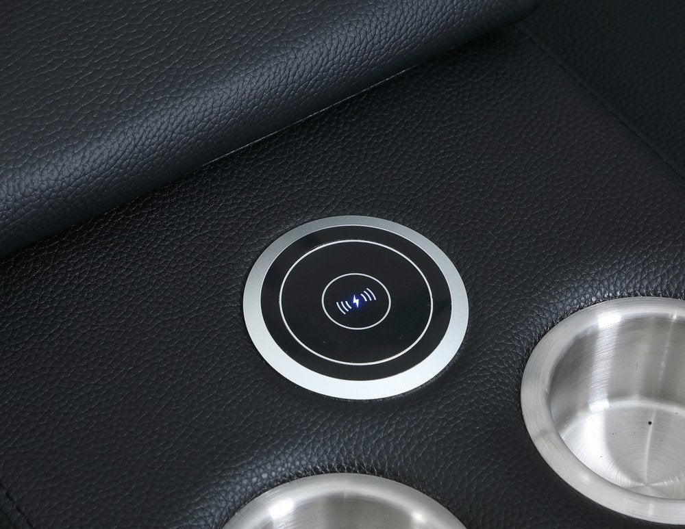 The black Italian leather power reclining u shaped eight piece corner sectional with double consoles is spaciously designed and meticulously...