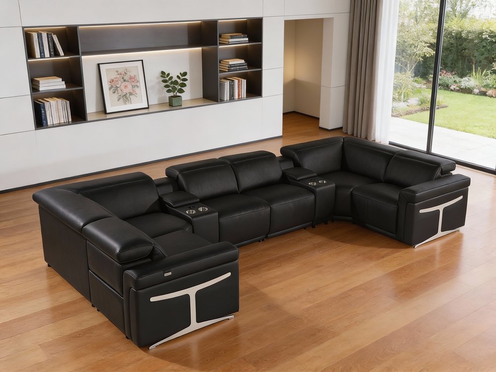 Superior construction from fabulously soft and high-grade leather gives this black Italian leather power reclining u shaped eight piece sectional...
