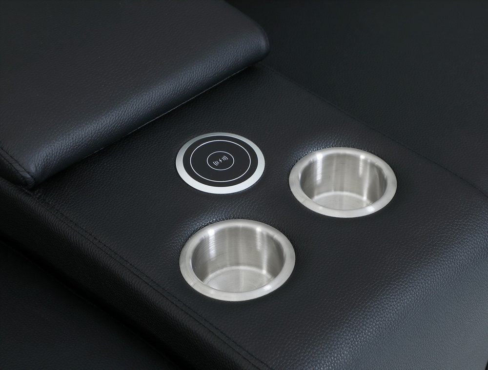 Black Italian Leather Power Reclining U Shaped Seven Piece Corner Sectional With Console