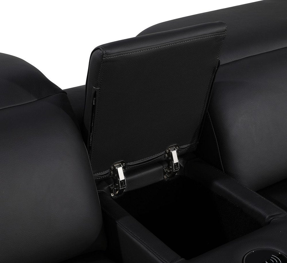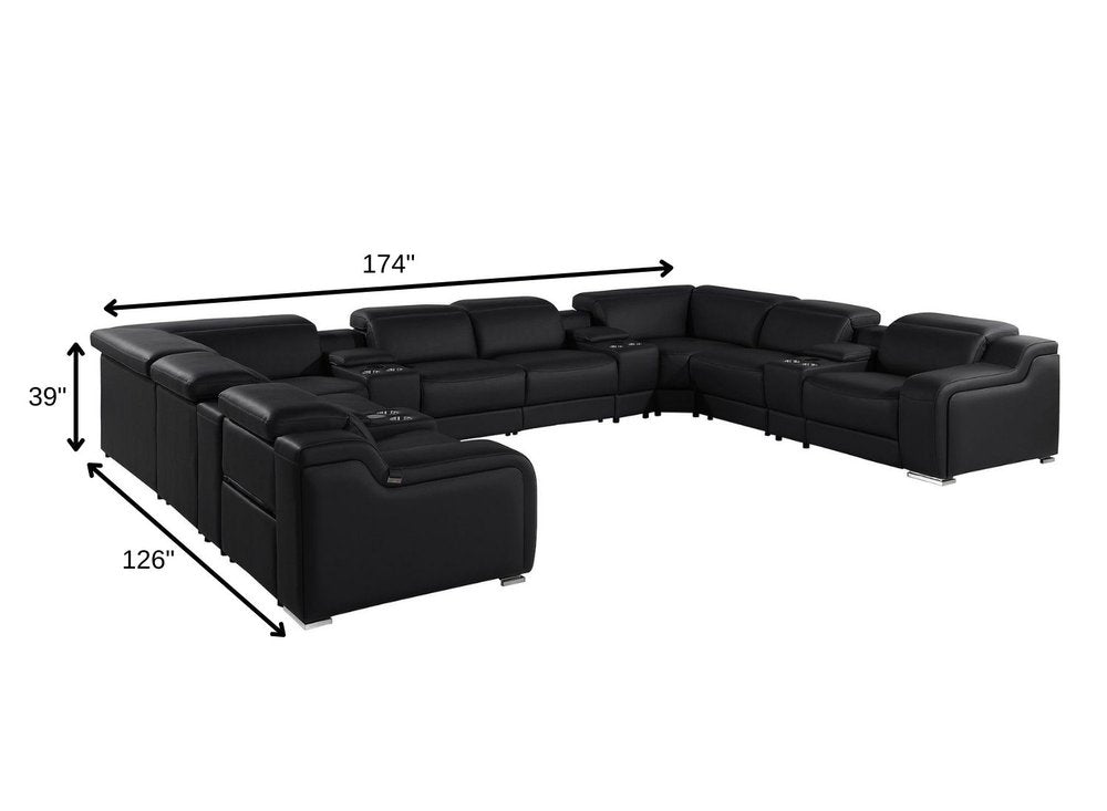 Black Italian Leather Power Reclining U Shaped Twelve Piece Corner Sectional With Console
