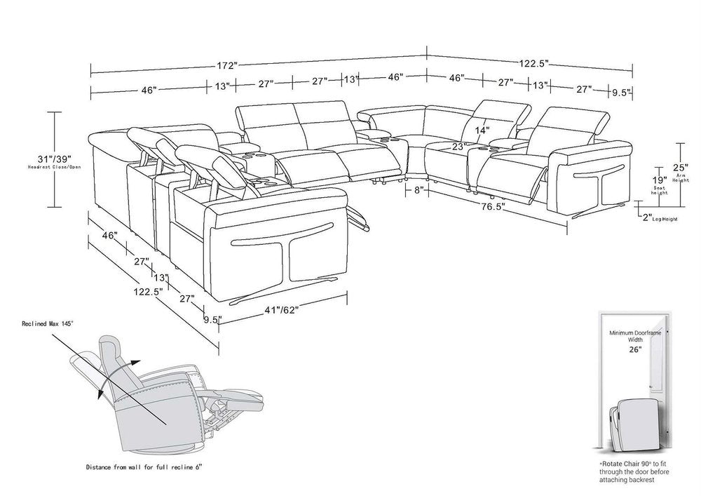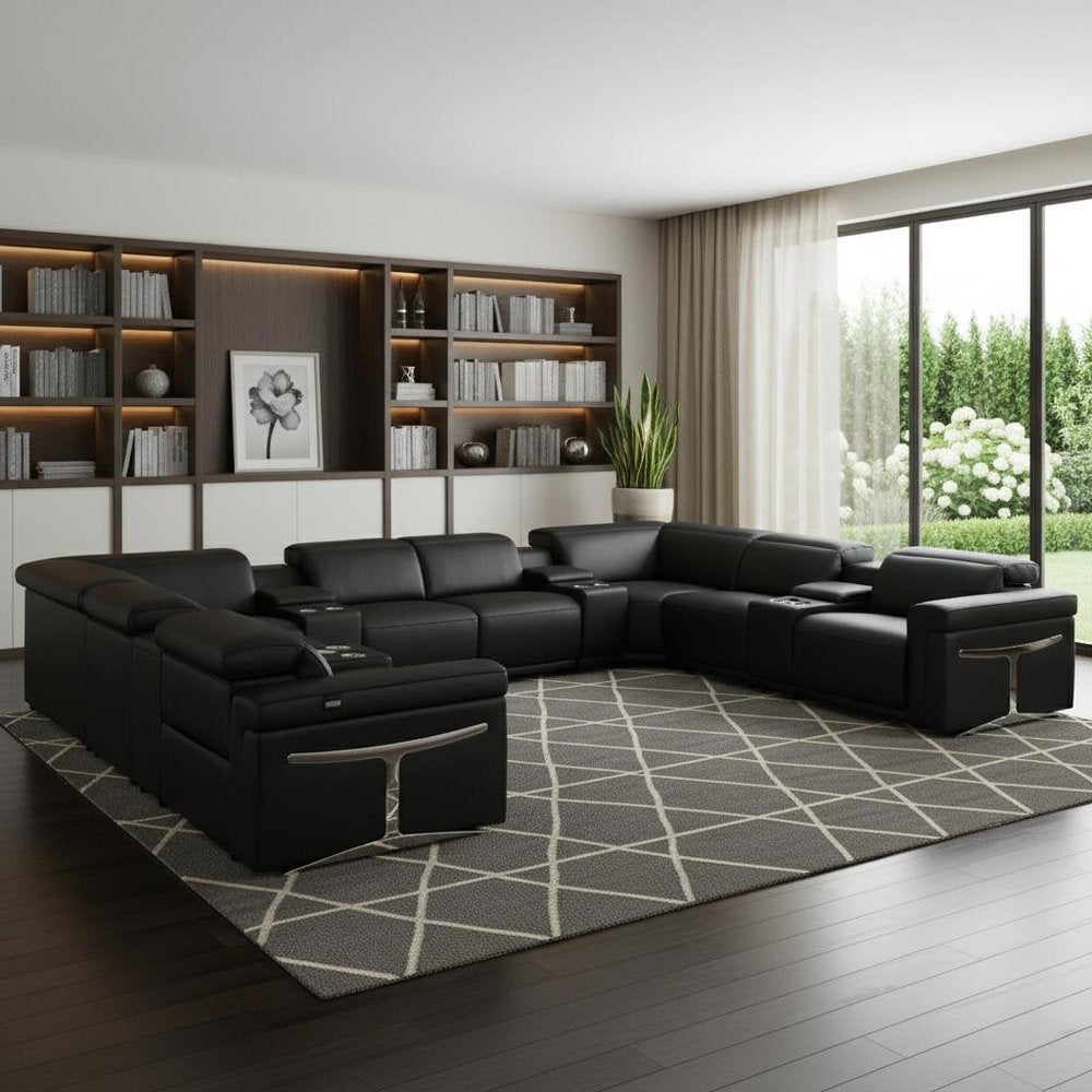An interior designer's dream, this buttery soft high-grade leather black Italian leather power reclining u shaped twelve piece sectional with...