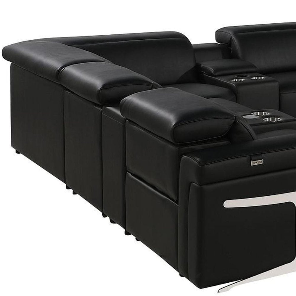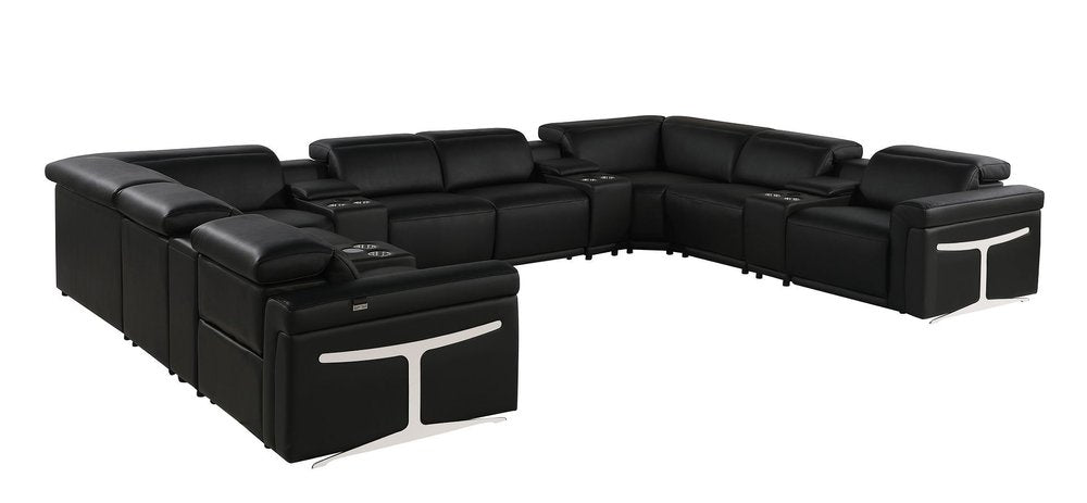 Black Italian Leather Power Reclining U Shaped Twelve Piece Sectional With Console