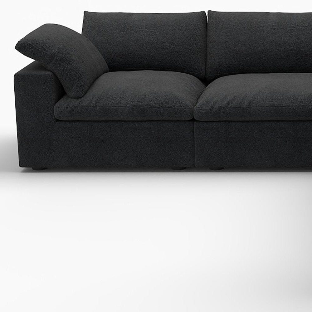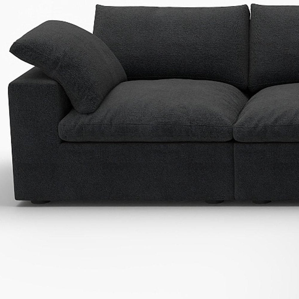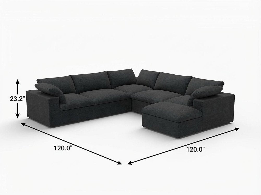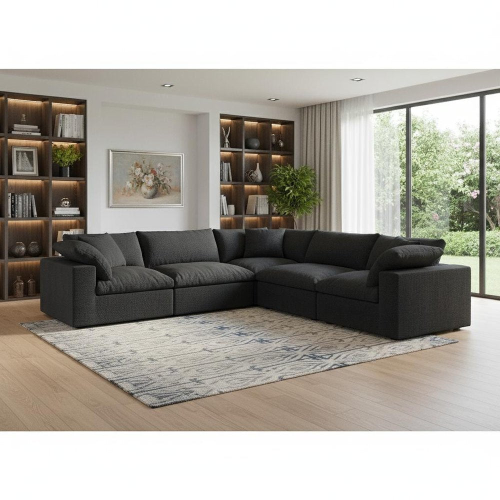 The black linen blend modular l shaped five piece corner sectional is spacious design meticulously crafted with extraordinary cushion comfort...