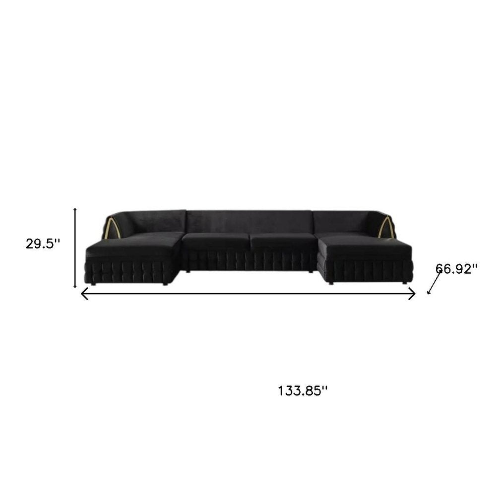 Black Velvet U Shaped Sofa and Chaise Sectional With Toss Pillows
