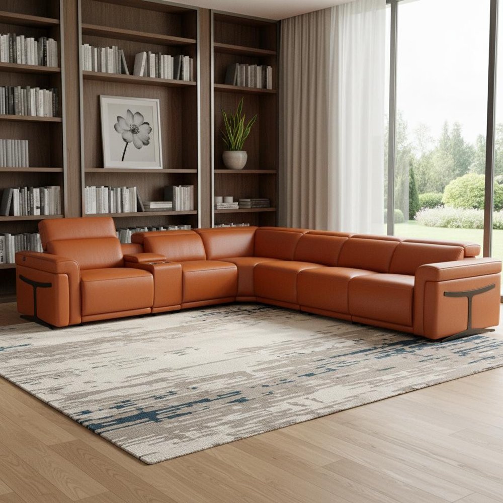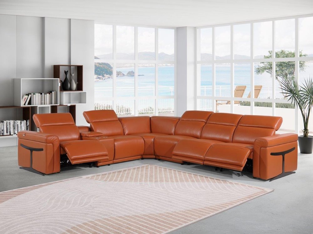 Superior construction from fabulously soft and high-grade leather gives this camel italian leather modular l shaped seven piece corner sectional...