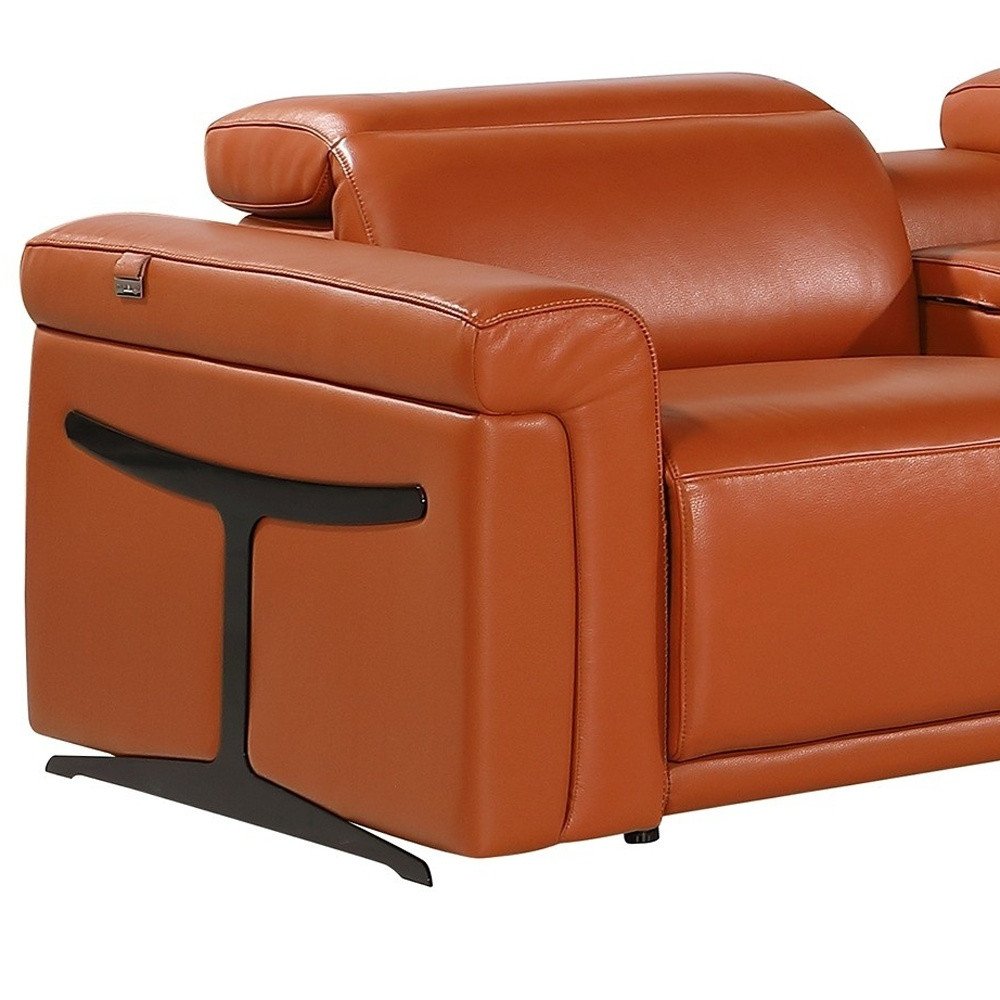 Camel Italian Leather Modular L Shaped Seven Piece Corner Sectional With Console