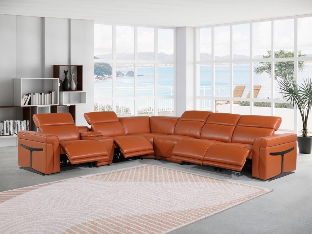 Superior construction from fabulously soft and high-grade leather gives this camel italian leather modular l shaped seven piece corner sectional...