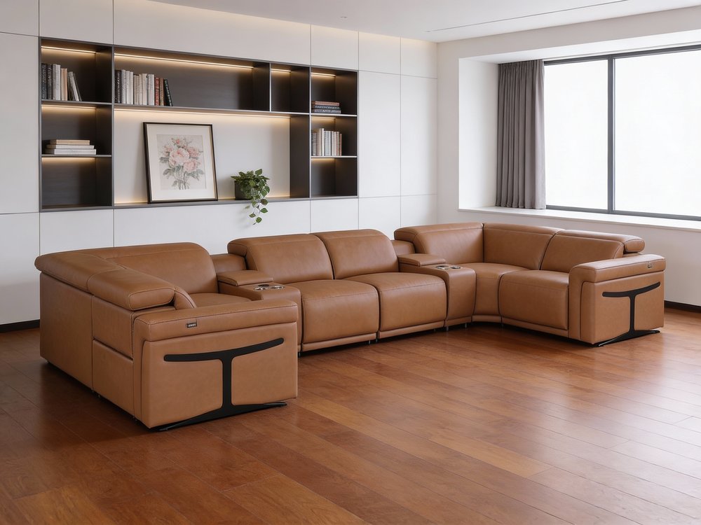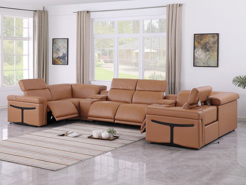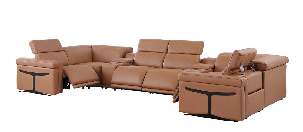 The chestnut Italian leather power reclining u shaped eight piece sectional with console is spacious design meticulously crafted with extraordinary...