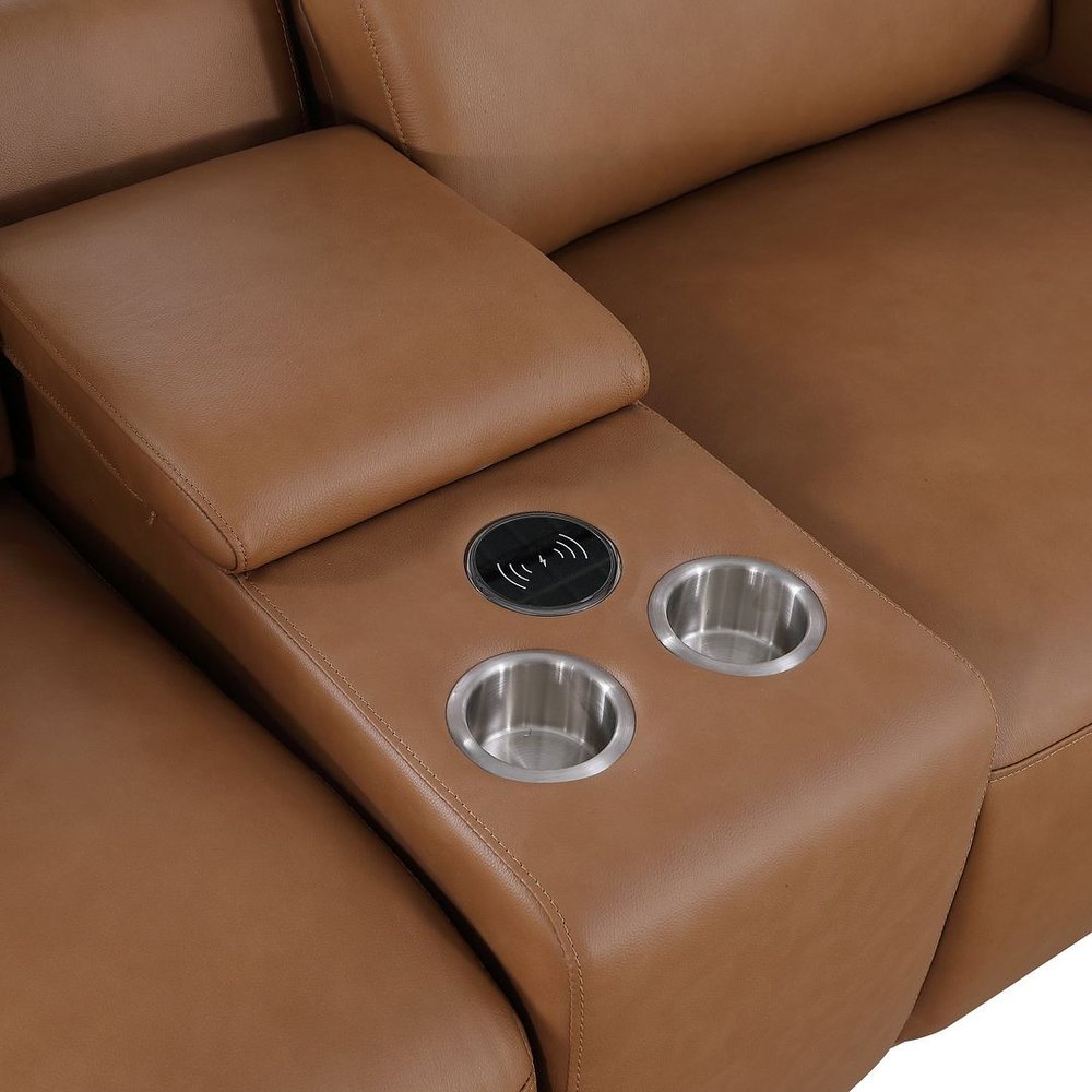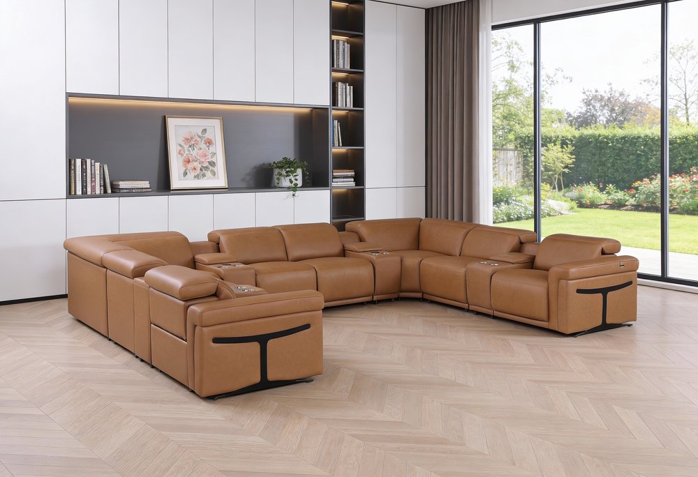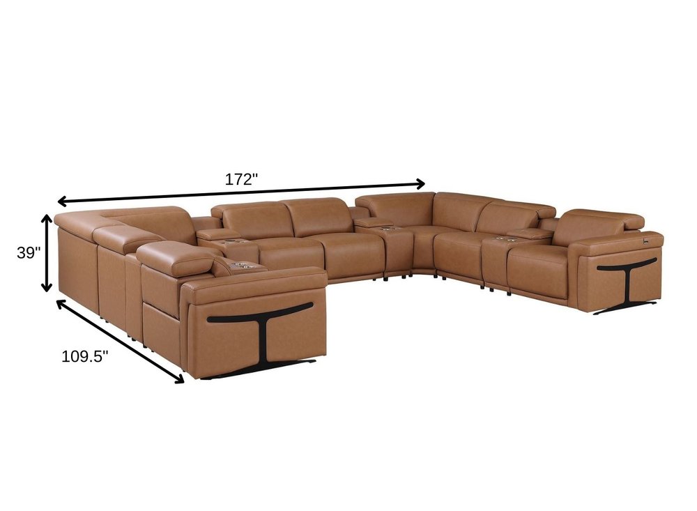 Chestnut Italian Leather Power Reclining U Shaped Ten Piece Corner Sectional With Console