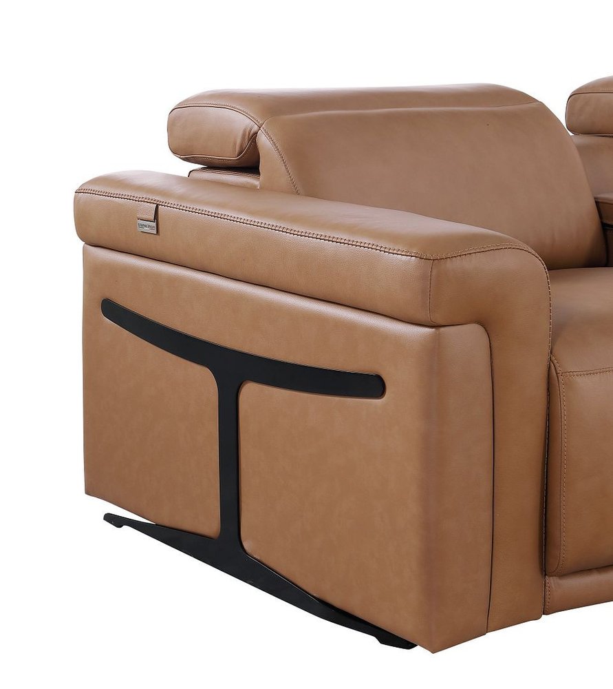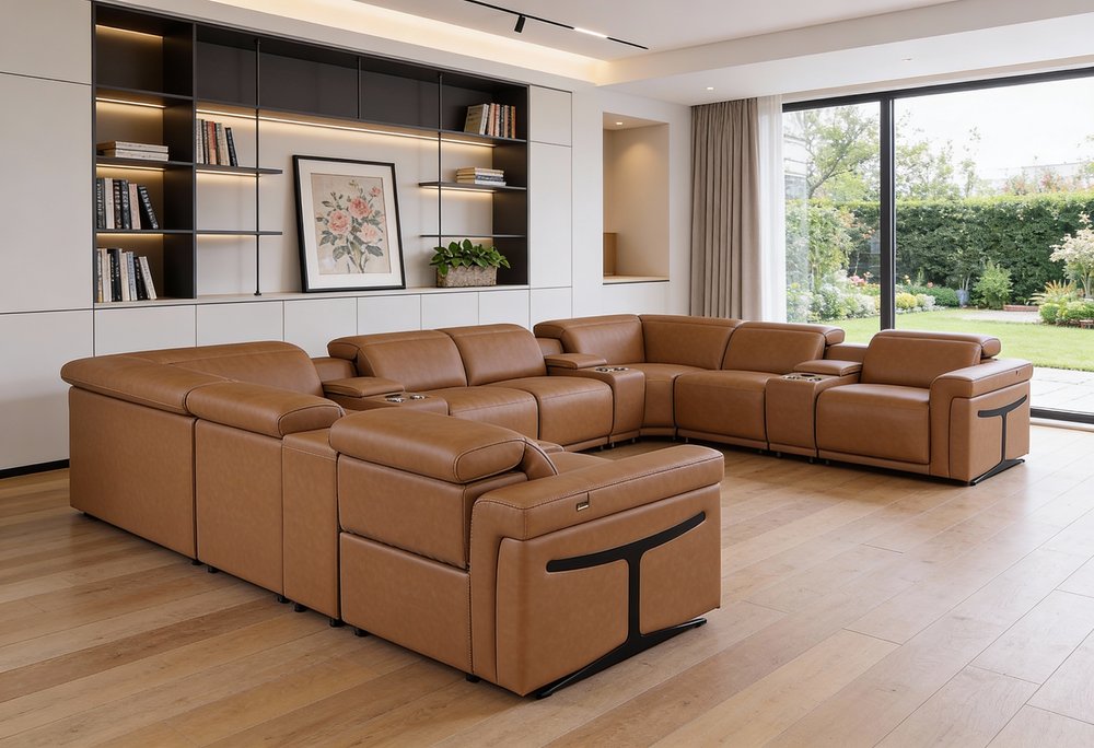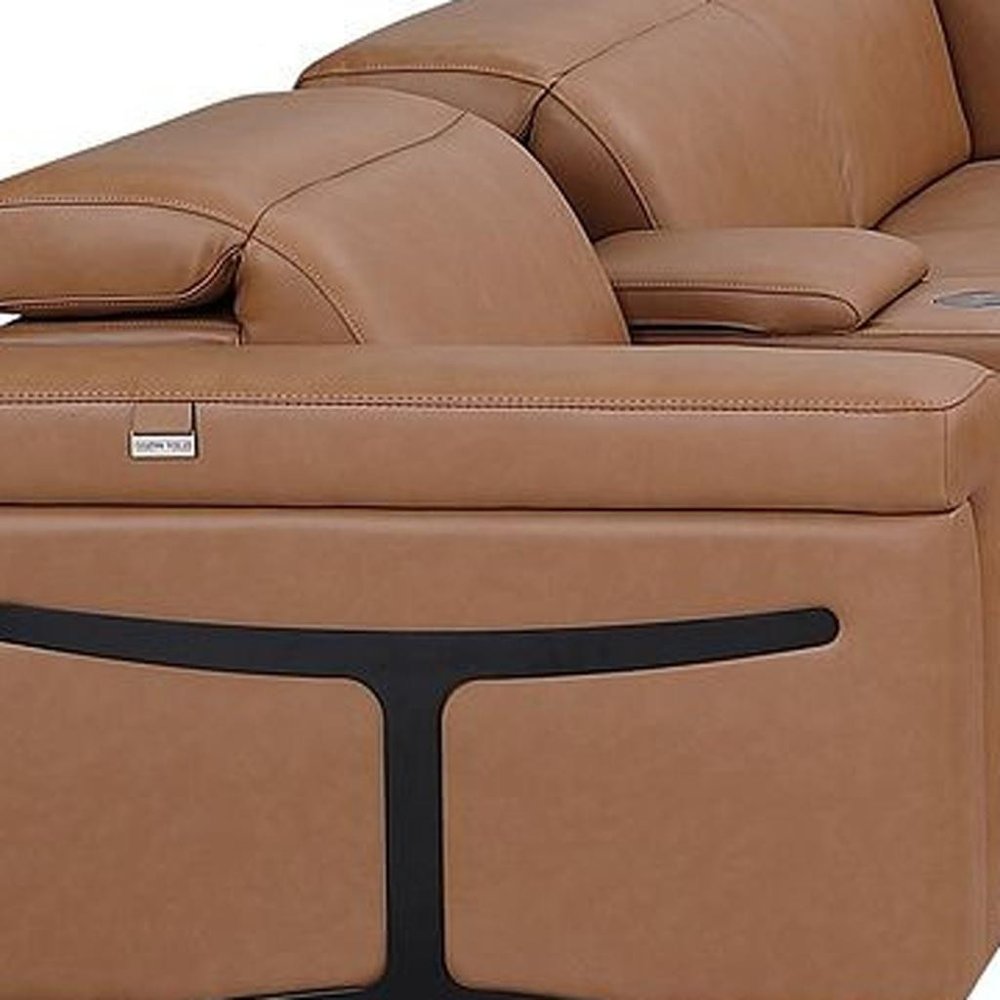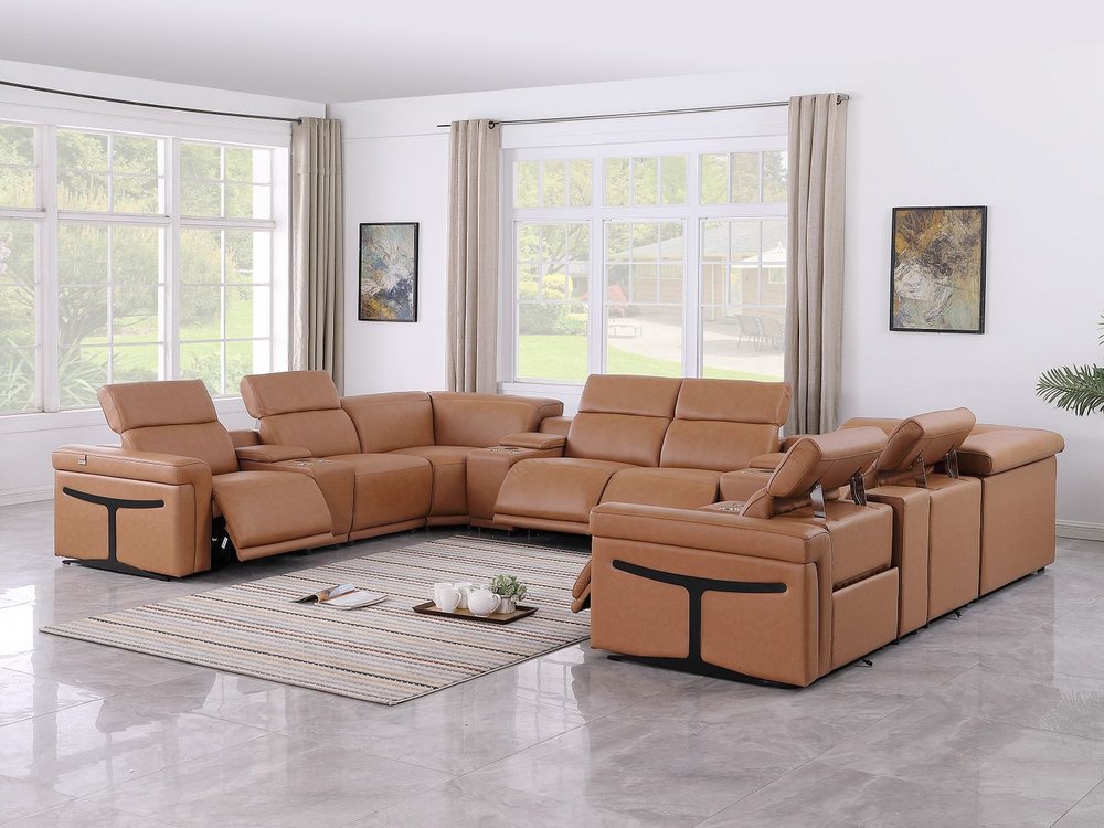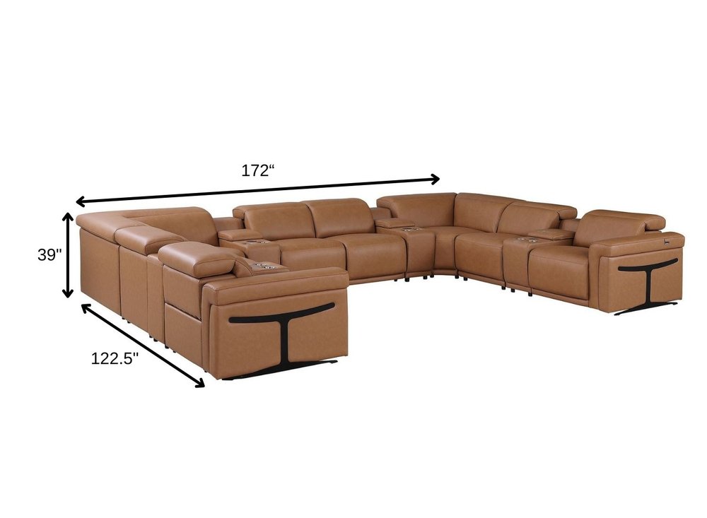 Chestnut Italian Leather Power Reclining U Shaped Twelve Piece Sectional With Console