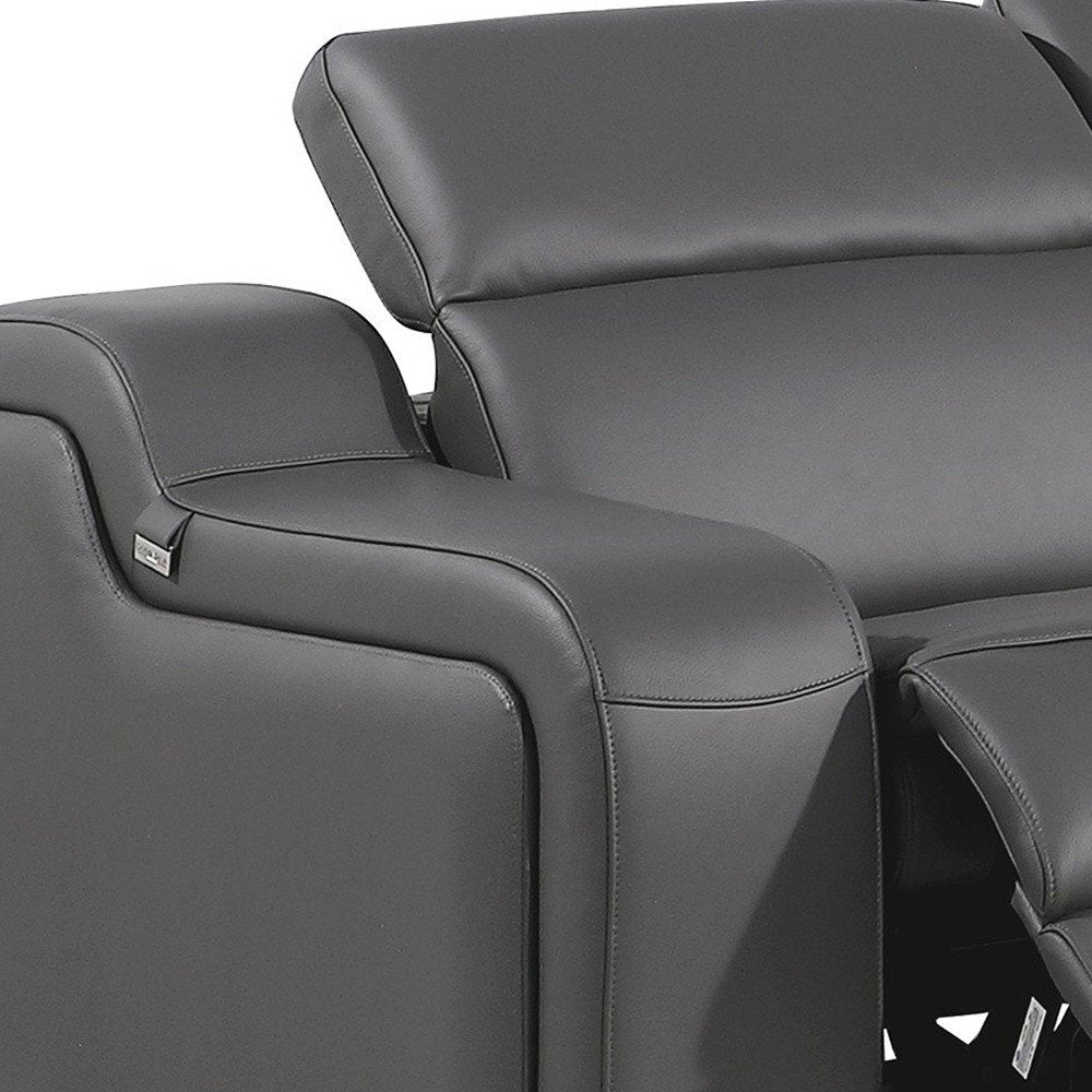 Dark Gray Italian Leather Power Reclining L Shaped Five Piece Corner Sectional
