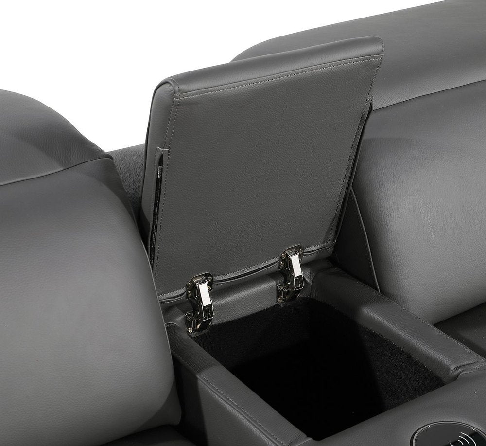 The dark gray italian leather power reclining l shaped six piece corner sectional with console is spacious design meticulously crafted... Read more