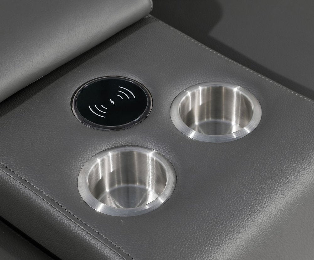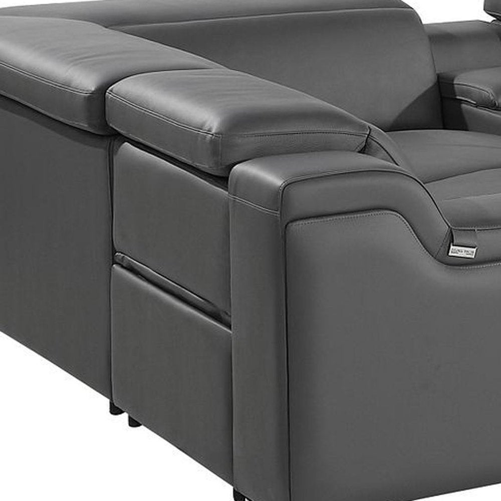Dark Gray Italian Leather Power Reclining U Shaped Eight Piece Corner Sectional With Console