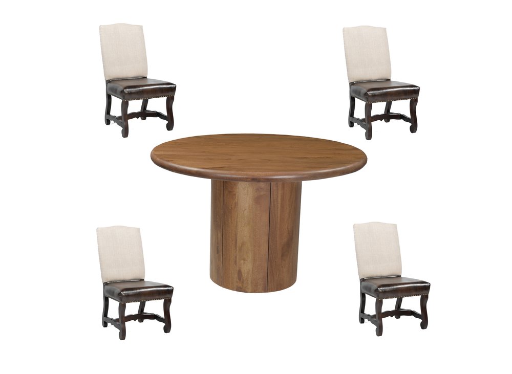 Five Piece Brown Round Solid Wood Dining Set with Four Chairs