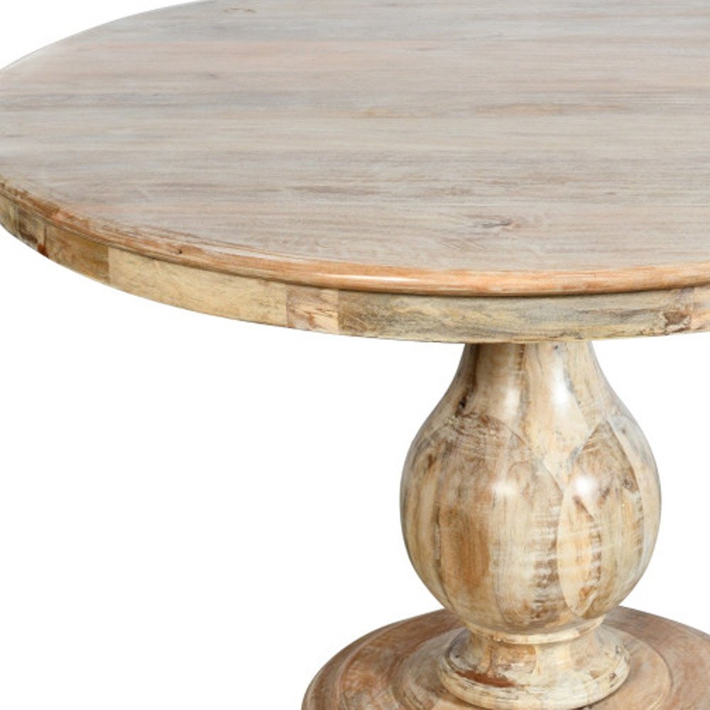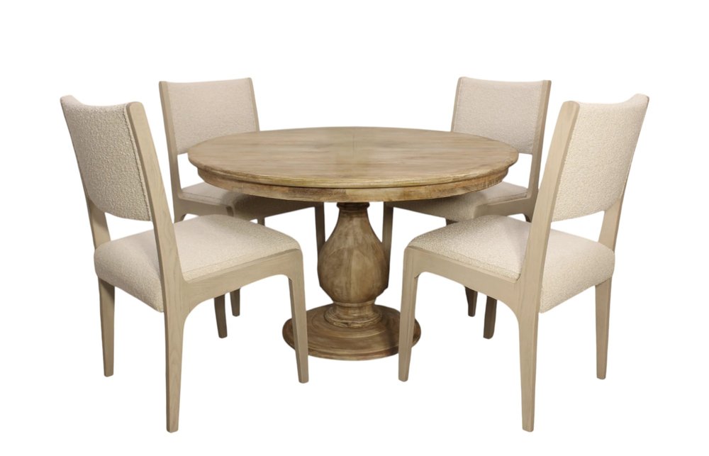 Five Piece Natural Round Solid Wood Dining Set with Four Chairs