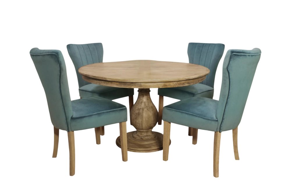 This five piece natural round solid wood dining set with four chairs is the right blend of style and comfort.... Read more
