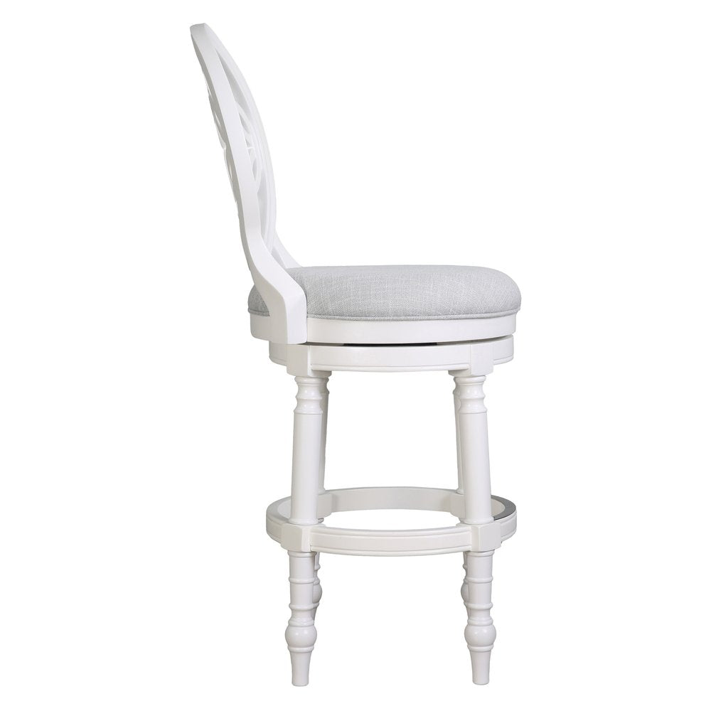 Comfort and design come together nicely in this gray and white fabric and solid wood bar height swivel bar chair.... Read more