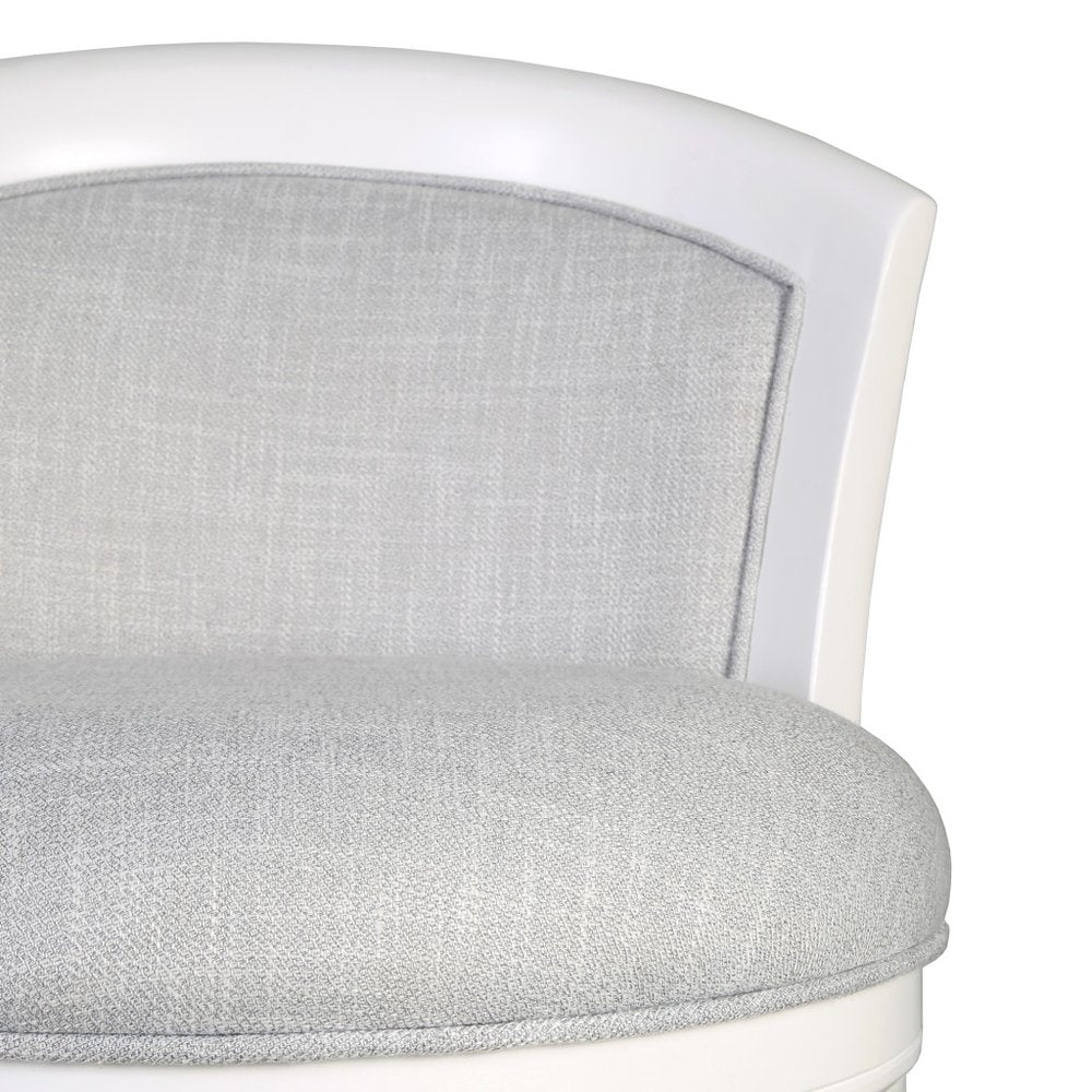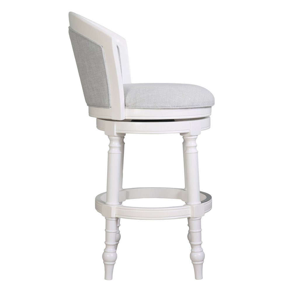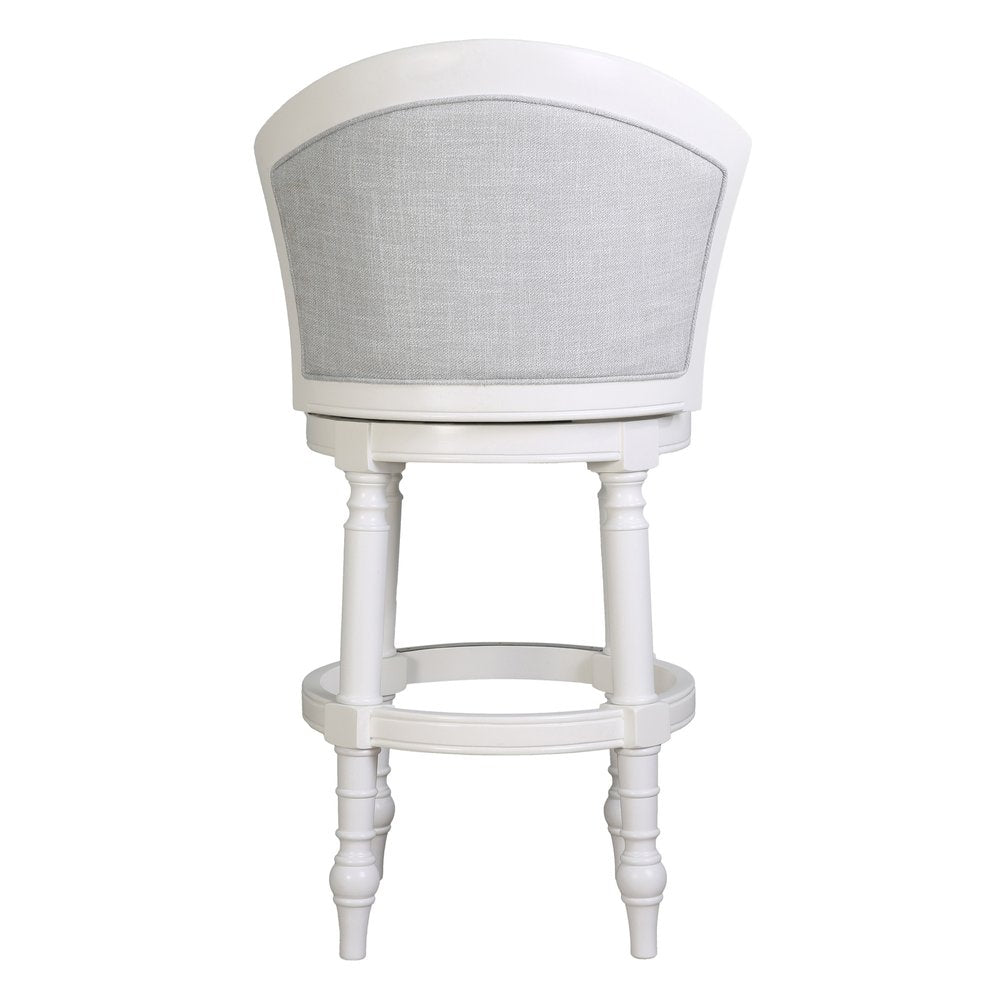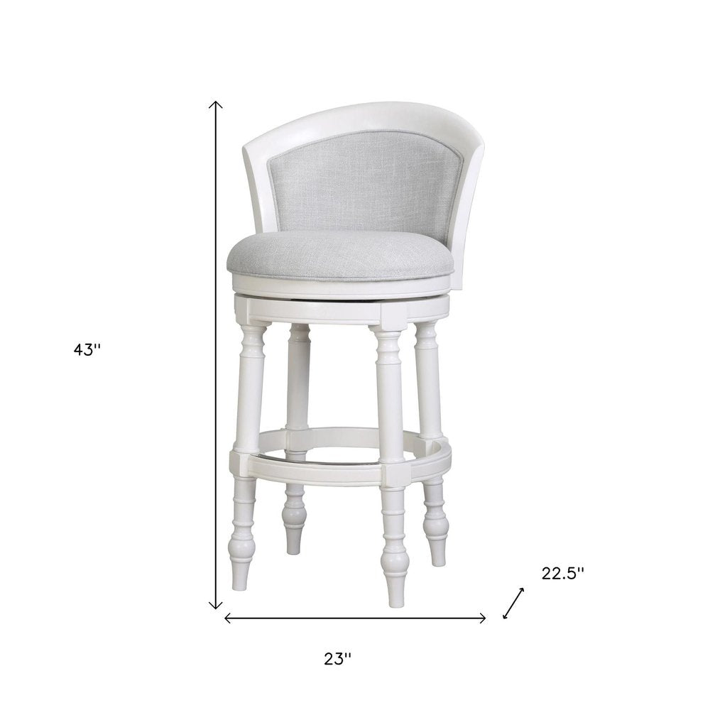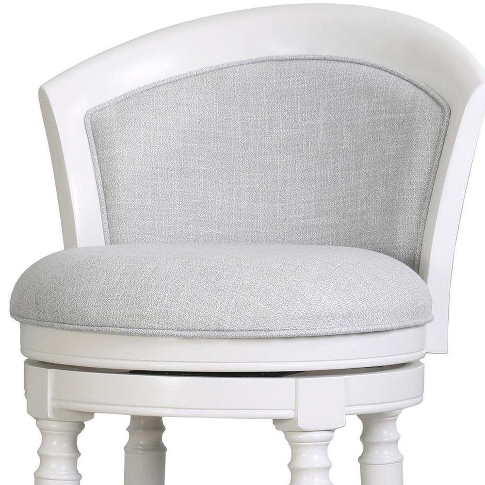 Gray and White Fabric and Solid Wood Low Back Bar Height Swivel Bar Chair