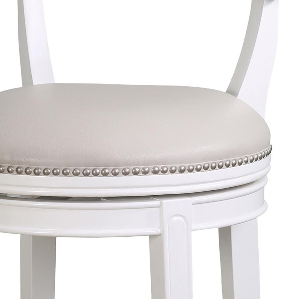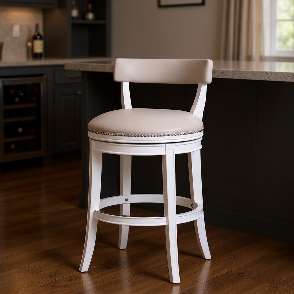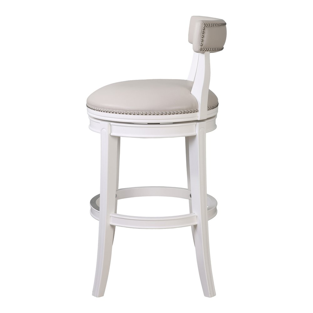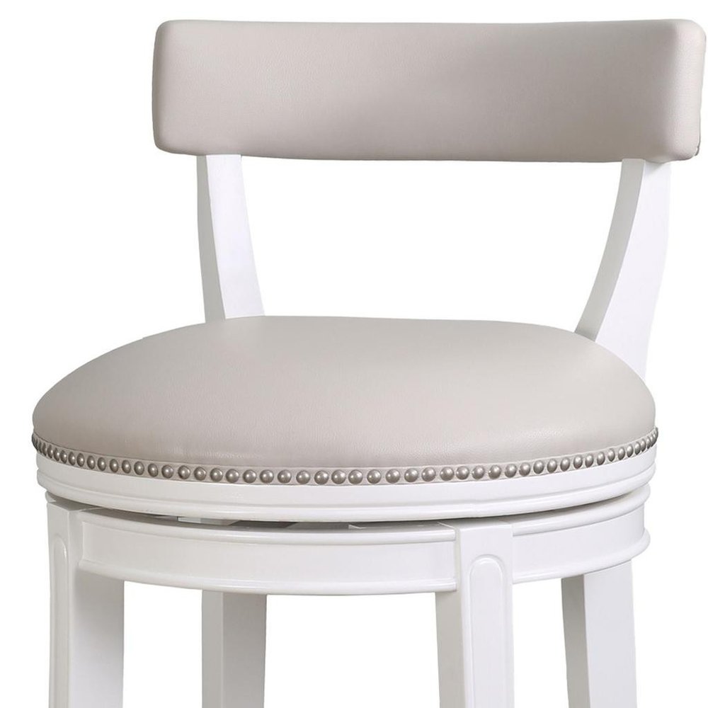 Gray and White Faux Leather and Solid Wood Low Back Bar Height Swivel Bar Chair