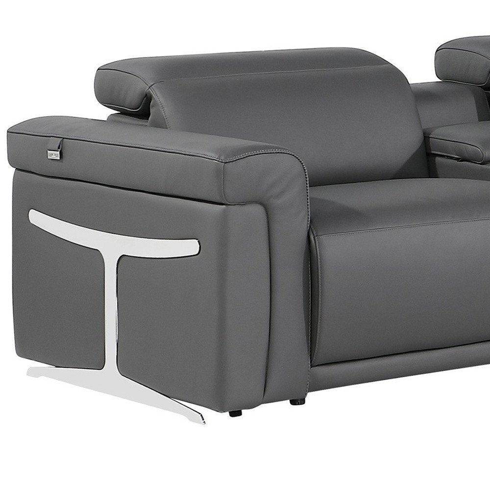 Gray Italian Leather Modular L Shaped Eight Piece Corner Sectional With Console