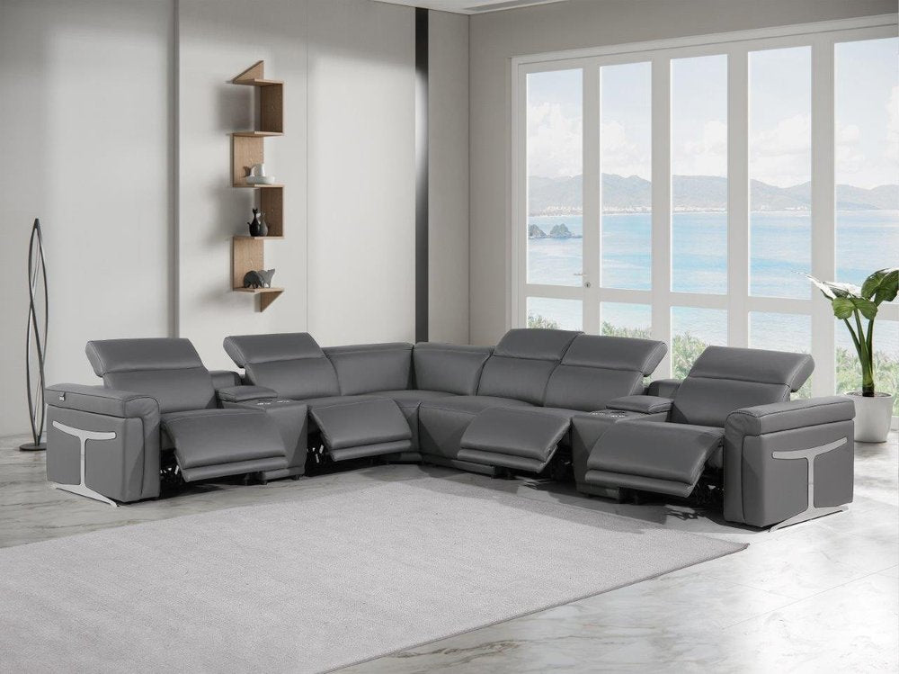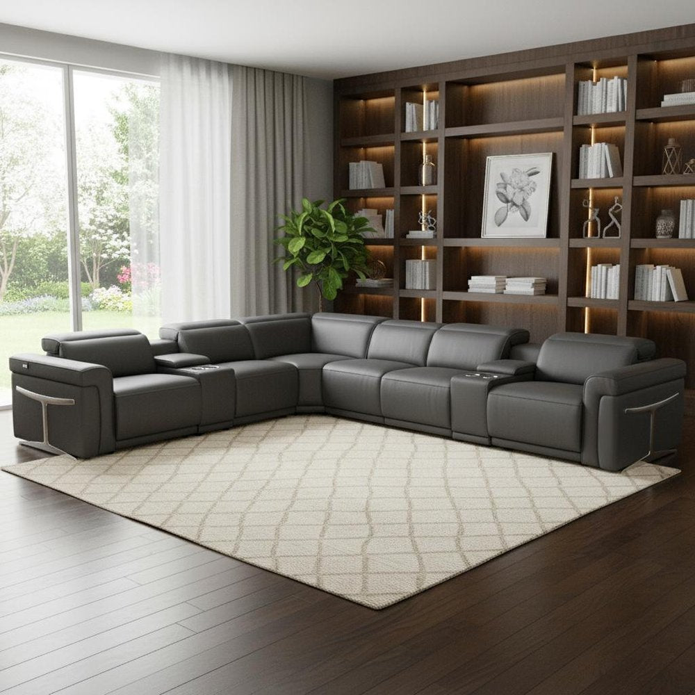 The gray italian leather modular l shaped eight piece corner sectional with console is spacious design meticulously crafted with extraordinary...