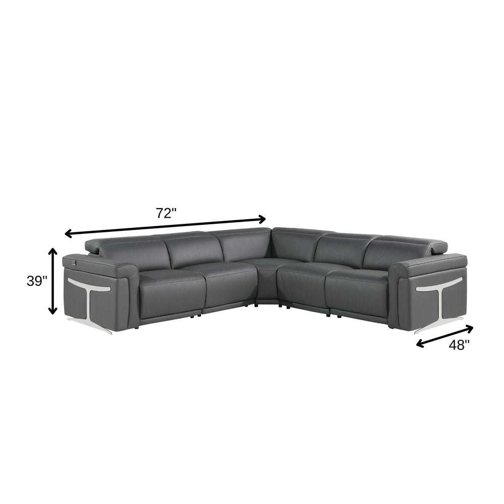 Gray Italian Leather Modular L Shaped Five Piece Corner Sectional