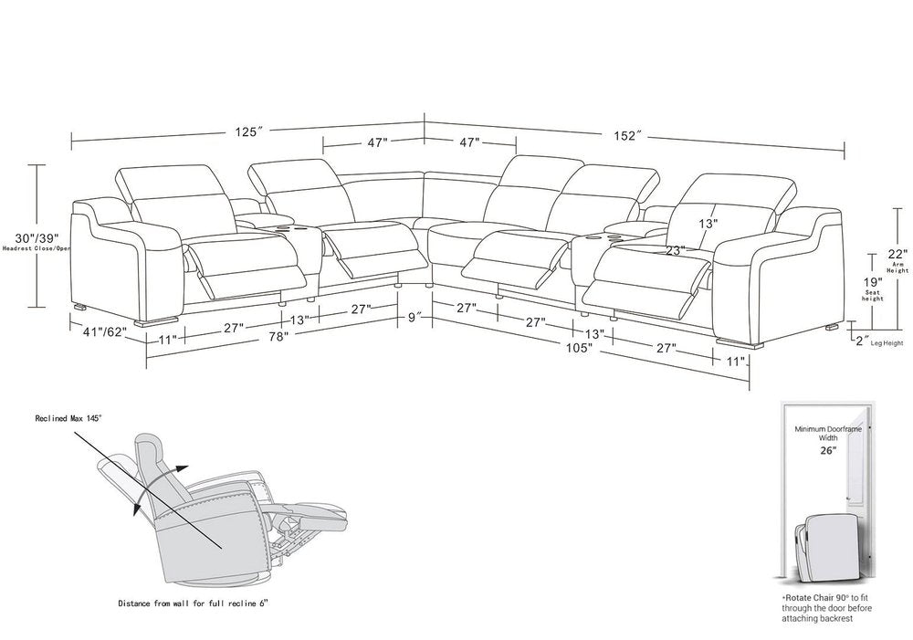 Take your relaxation to the next level with this super soft and comfortable gray italian leather power reclining curved eight... Read more