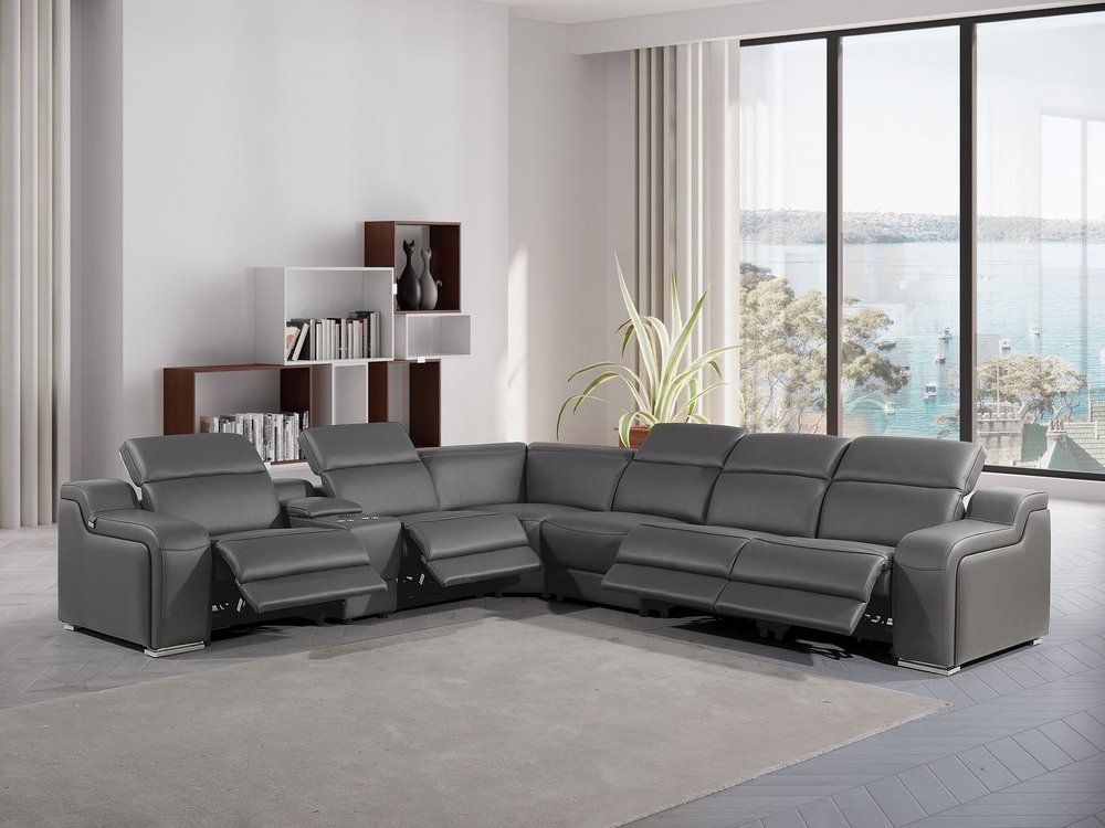 The gray italian leather power reclining curved seven piece corner sectional with console is spacious design meticulously crafted with extraordinary...