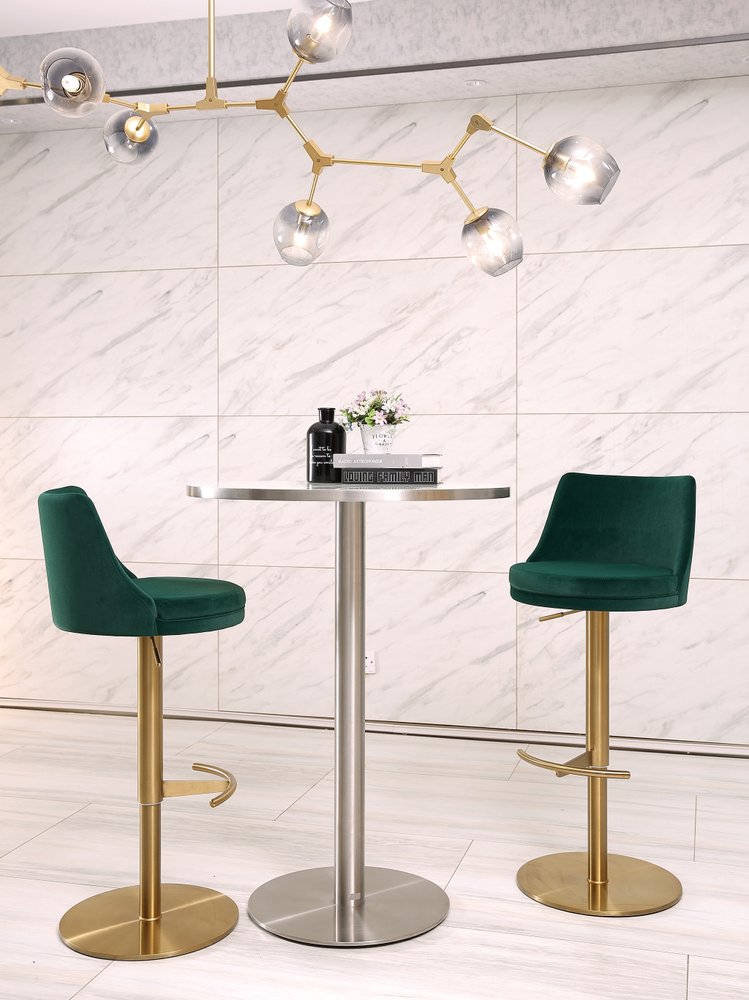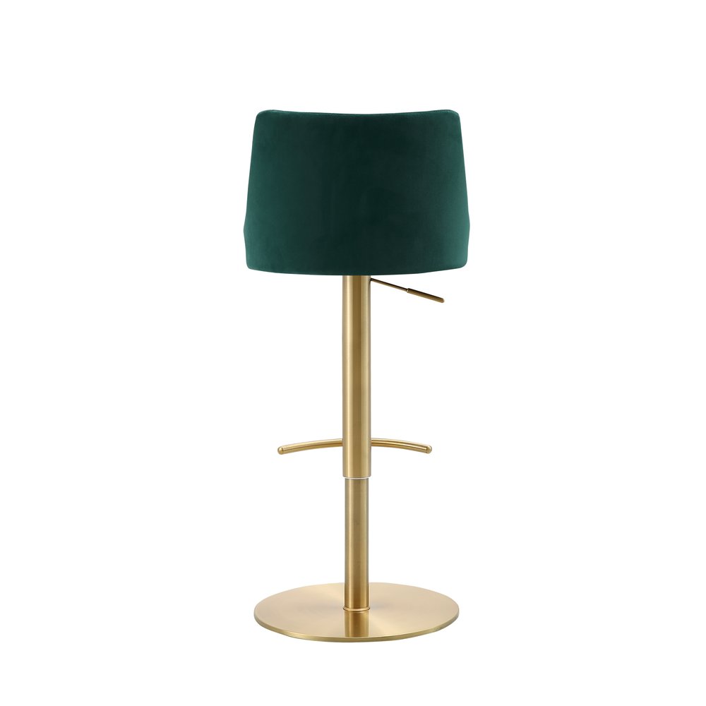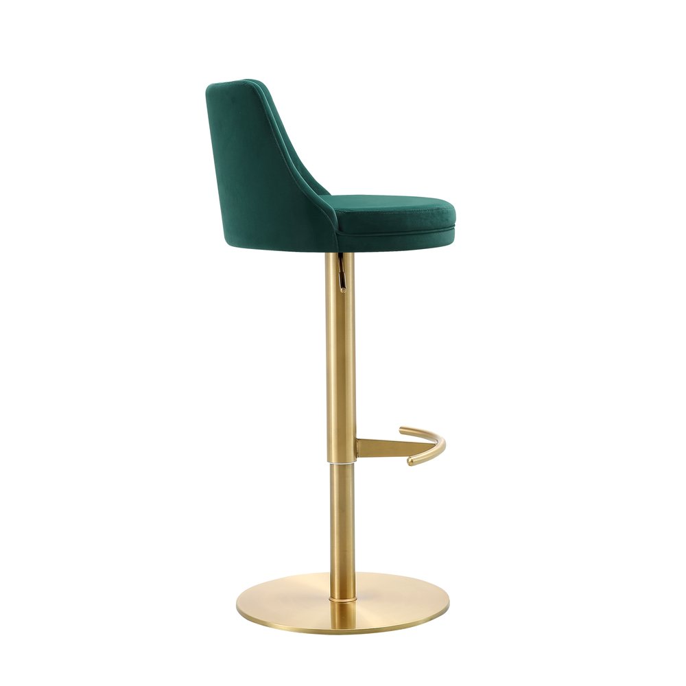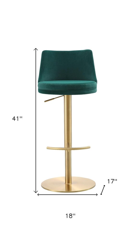 Green and Gold Velvet and Steel Low Back Adjustable Height Swivel Bar Chair