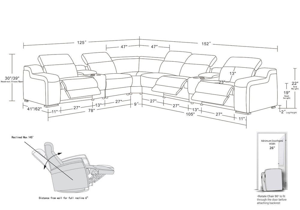 Take your relaxation to the next level with this super soft and comfortable light gray italian leather power reclining curved... Read more