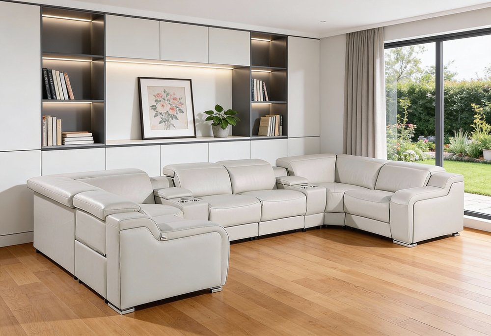 An interior designer's dream, this buttery soft high-grade leather light gray italian leather power reclining u shaped eight piece corner... Read more