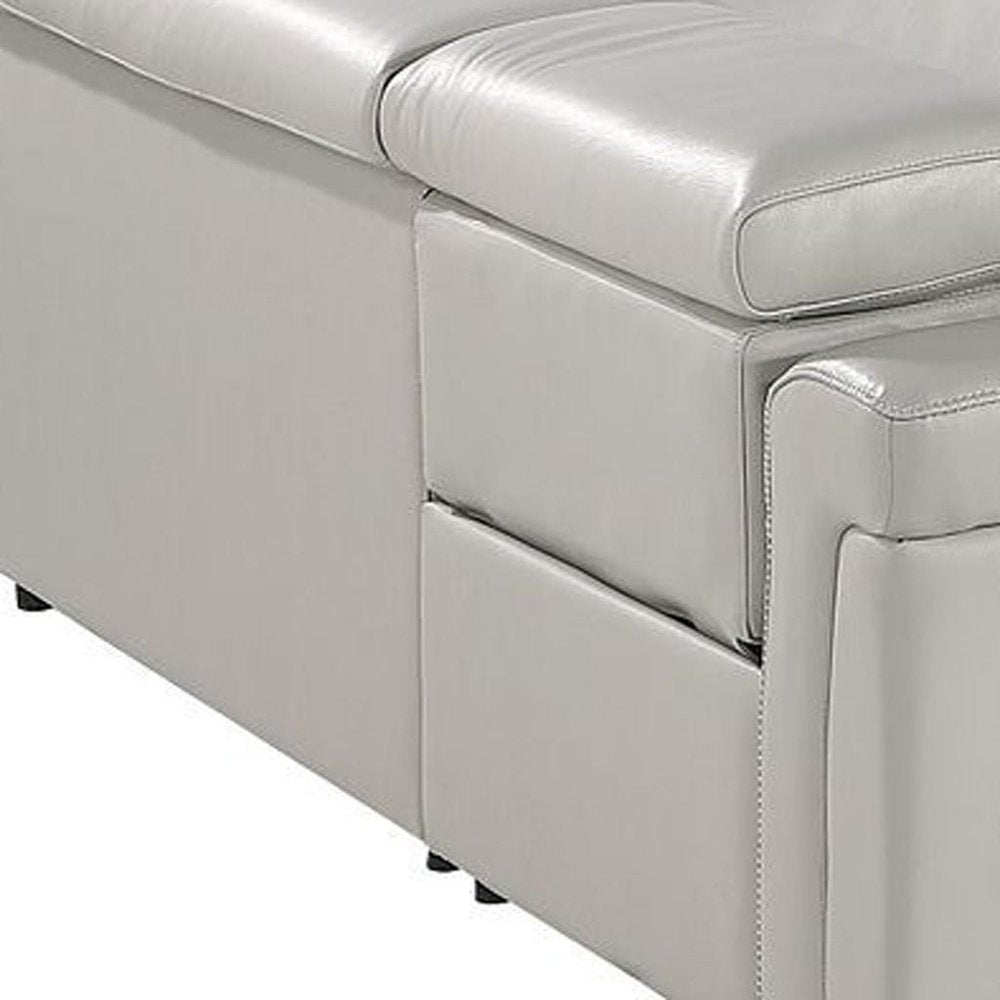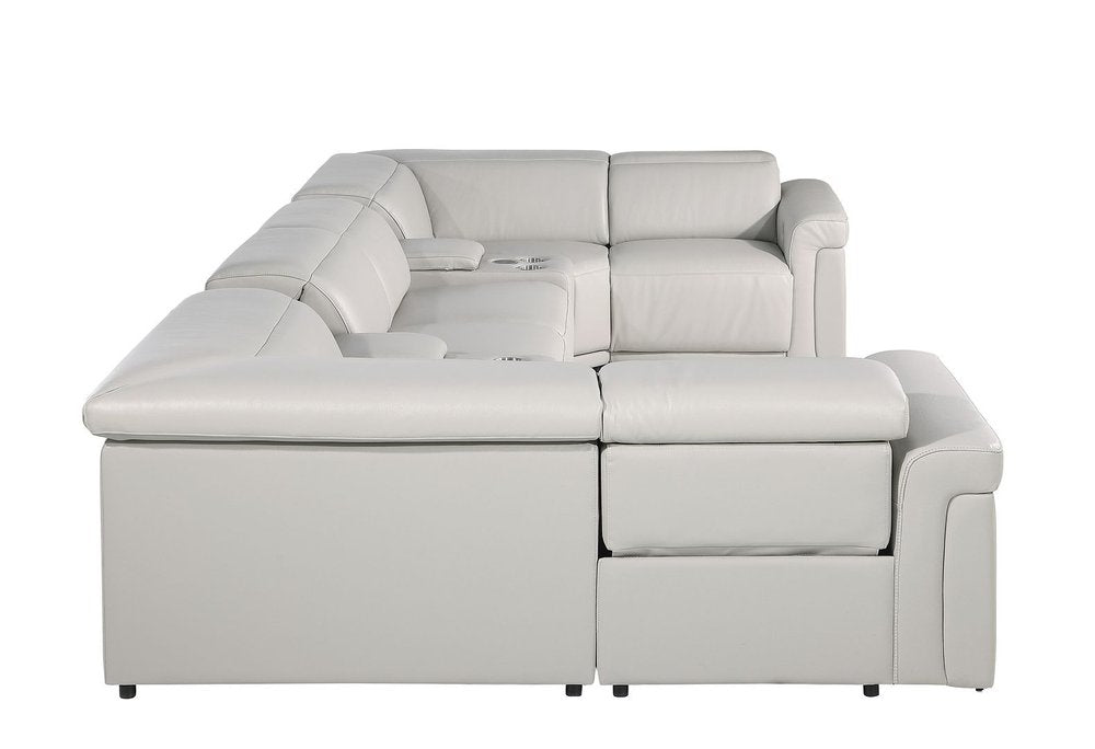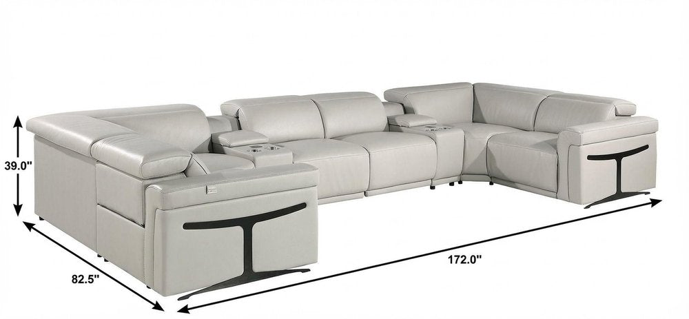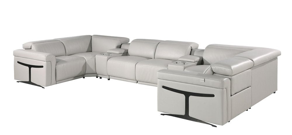 Light Gray Italian Leather Power Reclining U Shaped Eight Piece Corner Sectional With Console