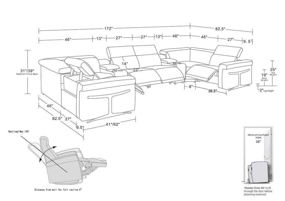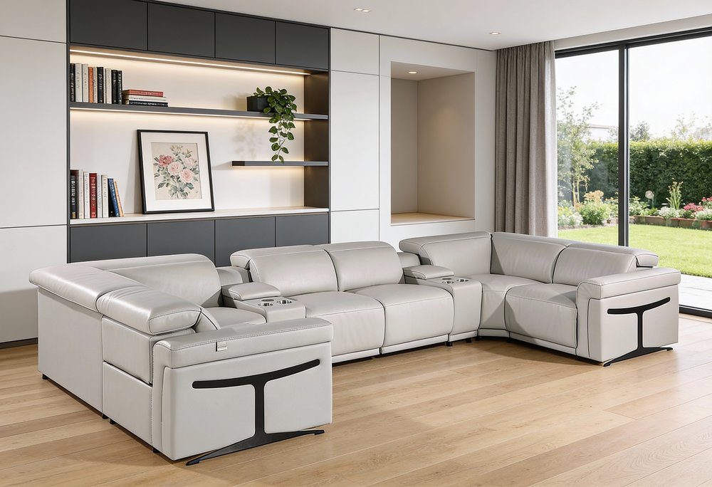 The light gray italian leather power reclining u shaped eight piece corner sectional with console is spacious design meticulously crafted... Read more