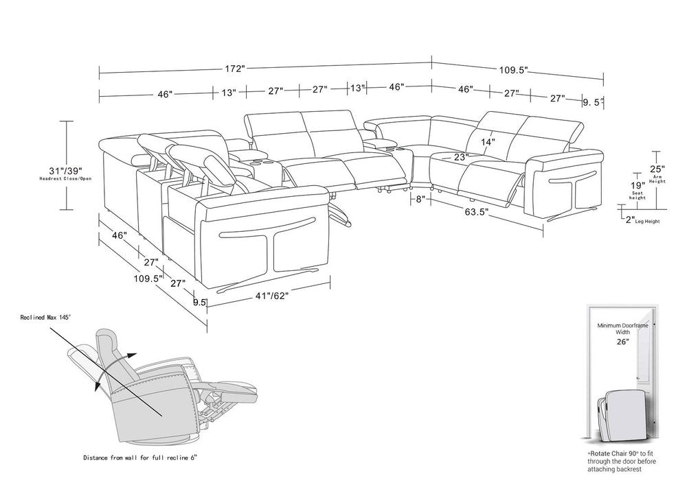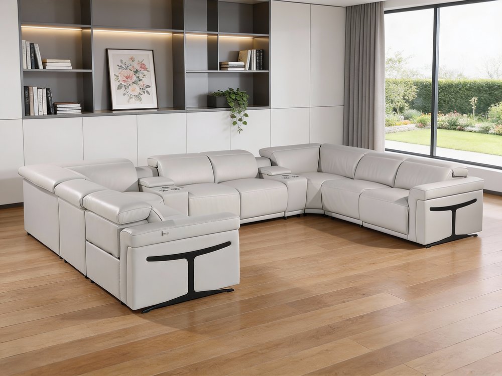 An interior designer's dream, this buttery soft high-grade leather light gray Italian leather power reclining u shaped ten piece corner... Read more