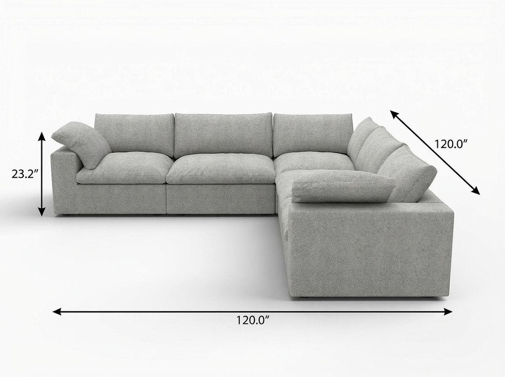 Light Gray Linen Blend Modular L Shaped Five Piece Corner Sectional