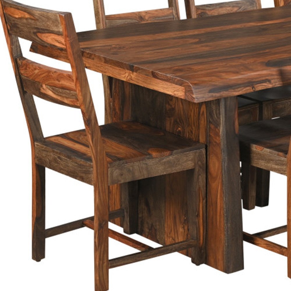 Nine Piece Brown Solid Wood Dining Set with Eight Chairs