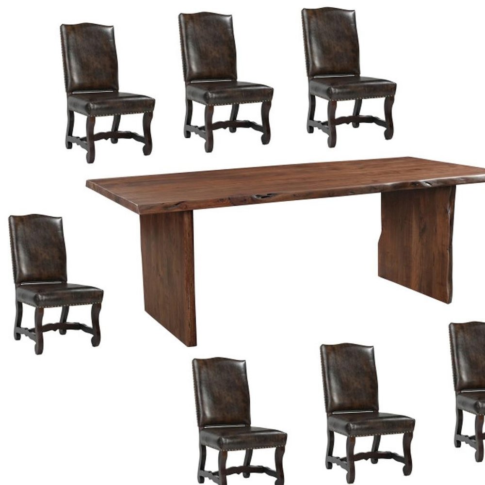 Nine Piece Brown Solid Wood Dining Set with Eight Chairs