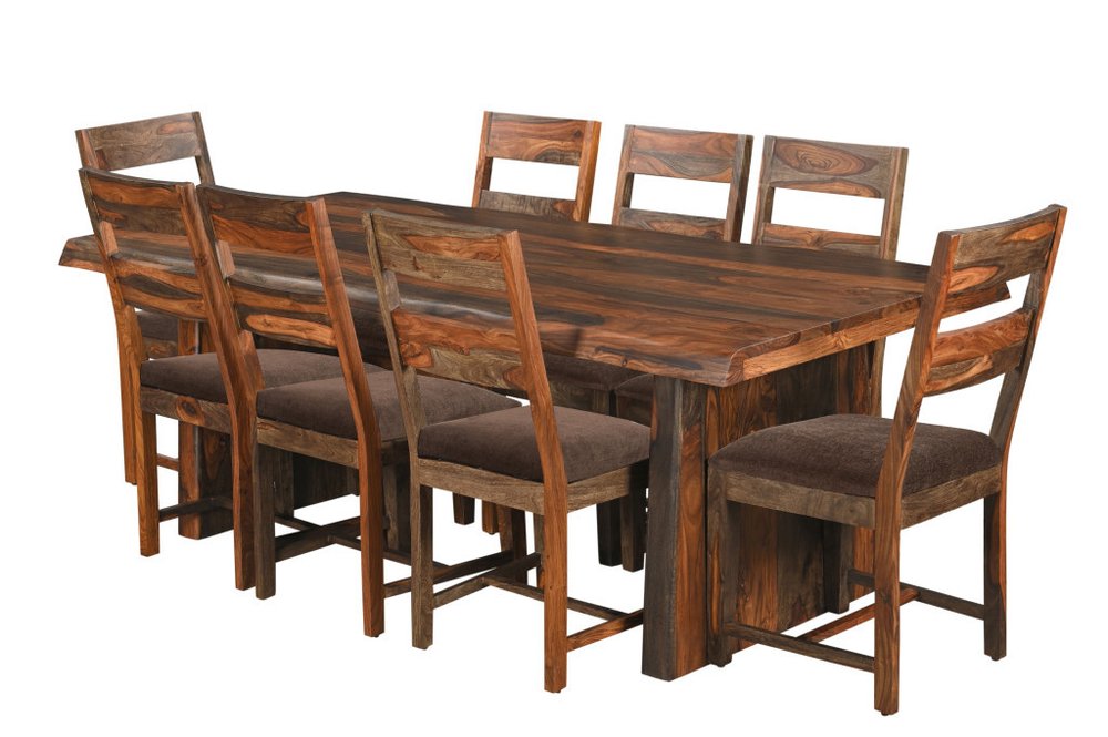 This nine piece dark brown solid wood dining set with eight chairs is crafted from the finest materials and built... Read more