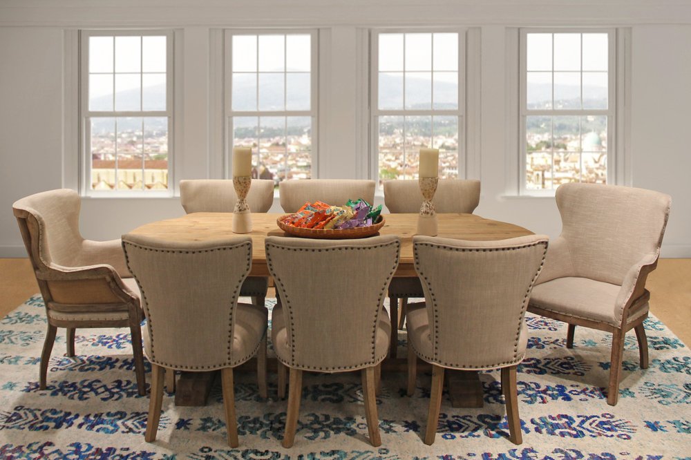 Nine Piece Natural Solid Wood Dining Set with Eight Chairs