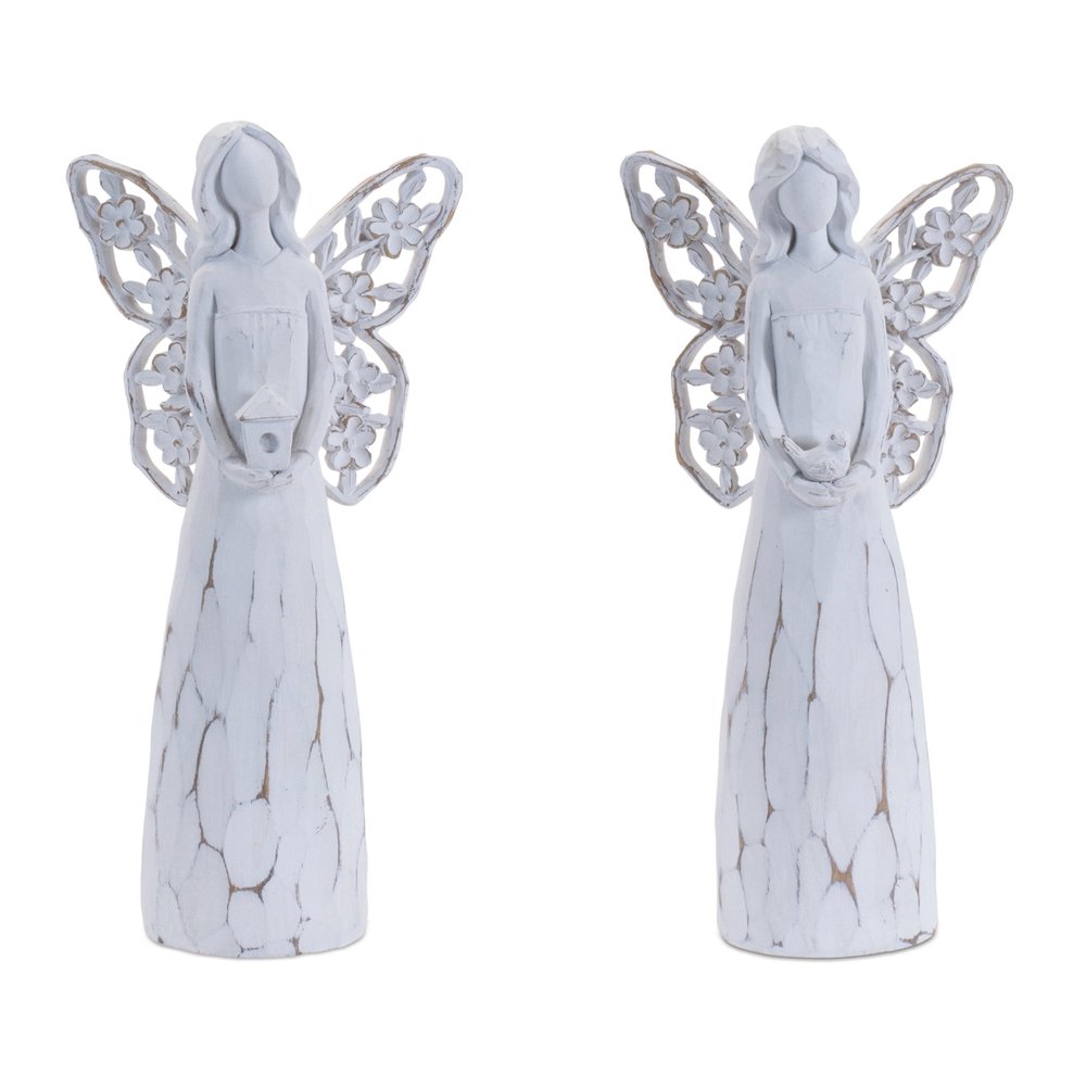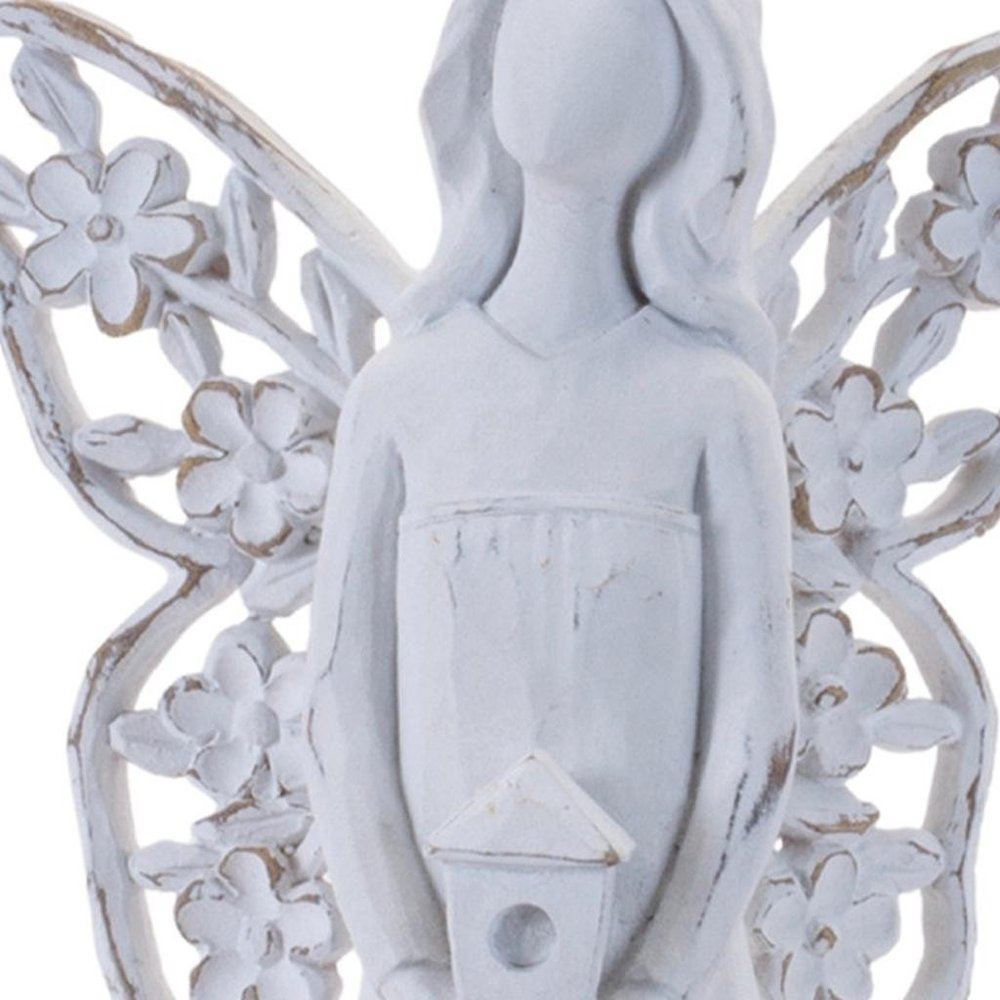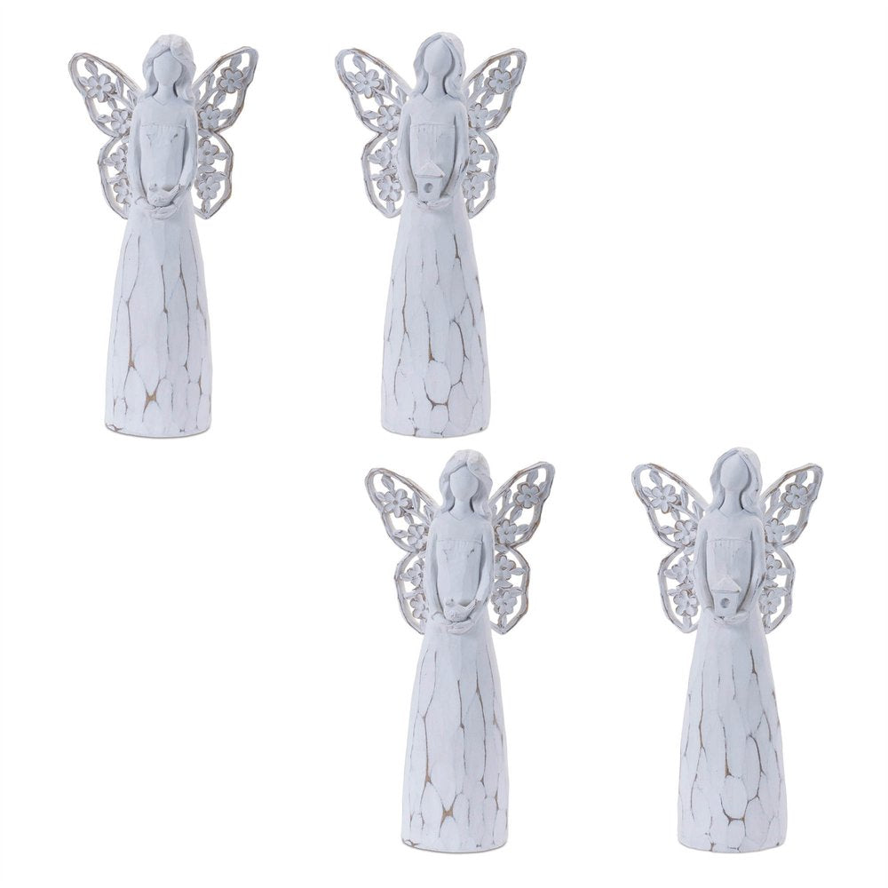 Set of Four White Polyresin Floral Wing Angel Figurines